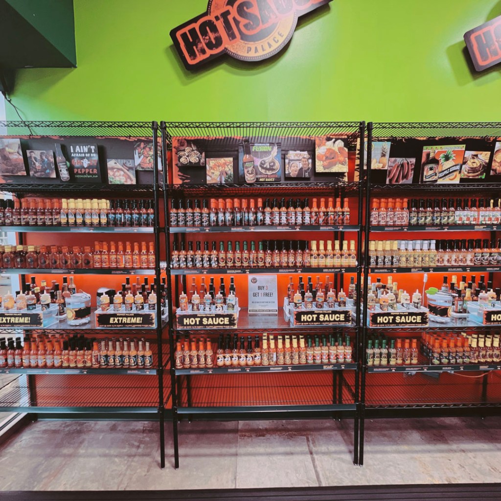 Comme il est un peu tôt pour check-in, on fait un tour dans un Outlet (c’est censé être des trucs de marques pas chers). Manu est à l’affut de la/de les casquettes de ses rêves, mais la quête est pour l’instant un peu vaine. On s’arrête dans un truc de chasse et barbecue, plutôt pour les trucs de barbecue. Y’a mon rêve. Des IRON SKILLET. Ça fait des années que j’en veux une géante.