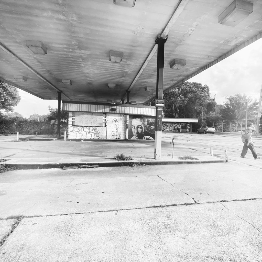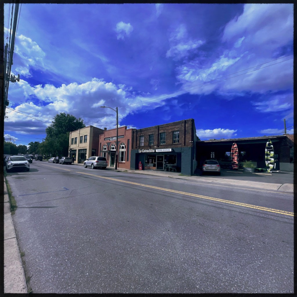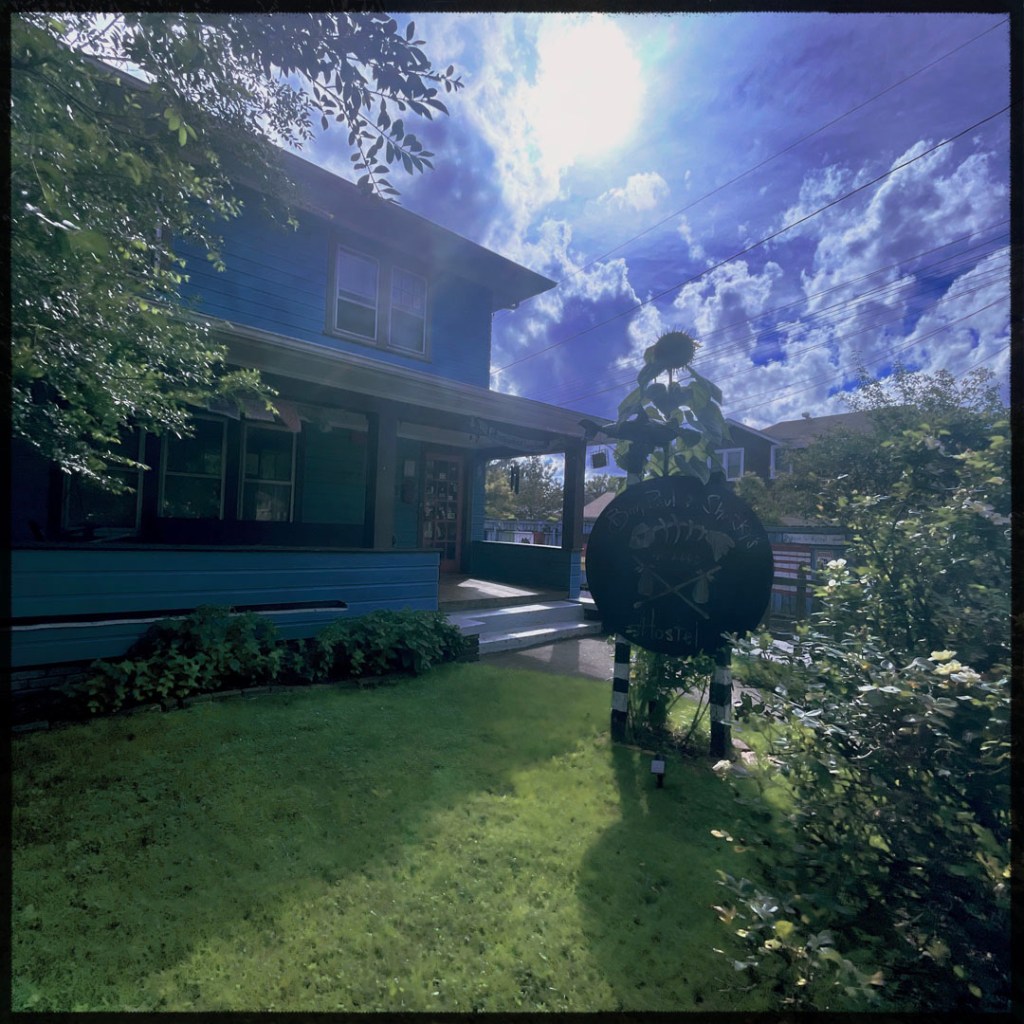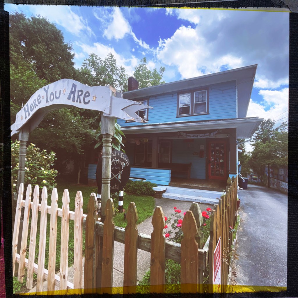 L’heure approche. Pour ce soir, j’ai réservé dans un Hostel, mais j’ai pris l’option avec salle de bain pour nous tout seul parce qu’on est vieux. Quand on arrive à Asheville, je repense à cette maison un peu avant la sortie de la Floride qui disait « FIGHT GENTRIFICATION ».