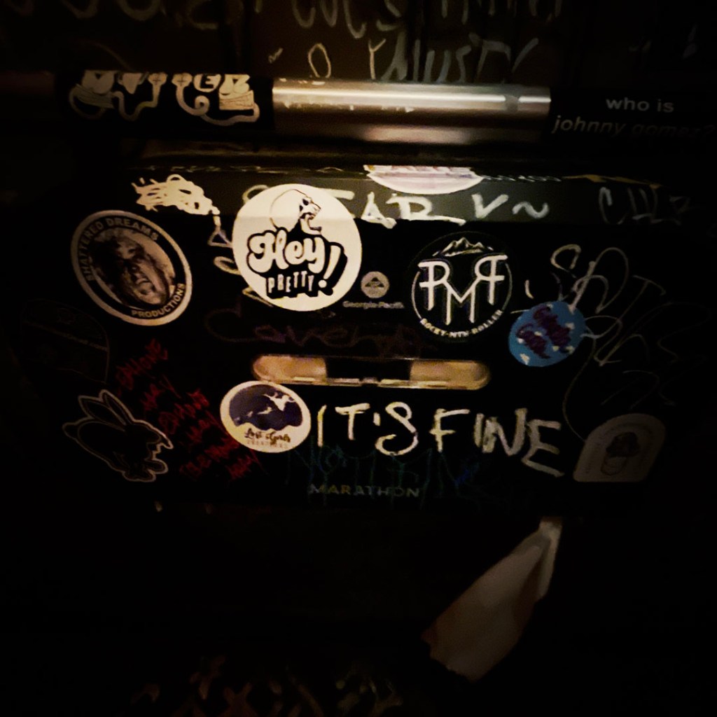On va ensuite dans un deuxième Dive Bar, le Double Crown. La déco est super aussi, je colle un autocollant Hey Pretty dans les toilettes. Thug life.