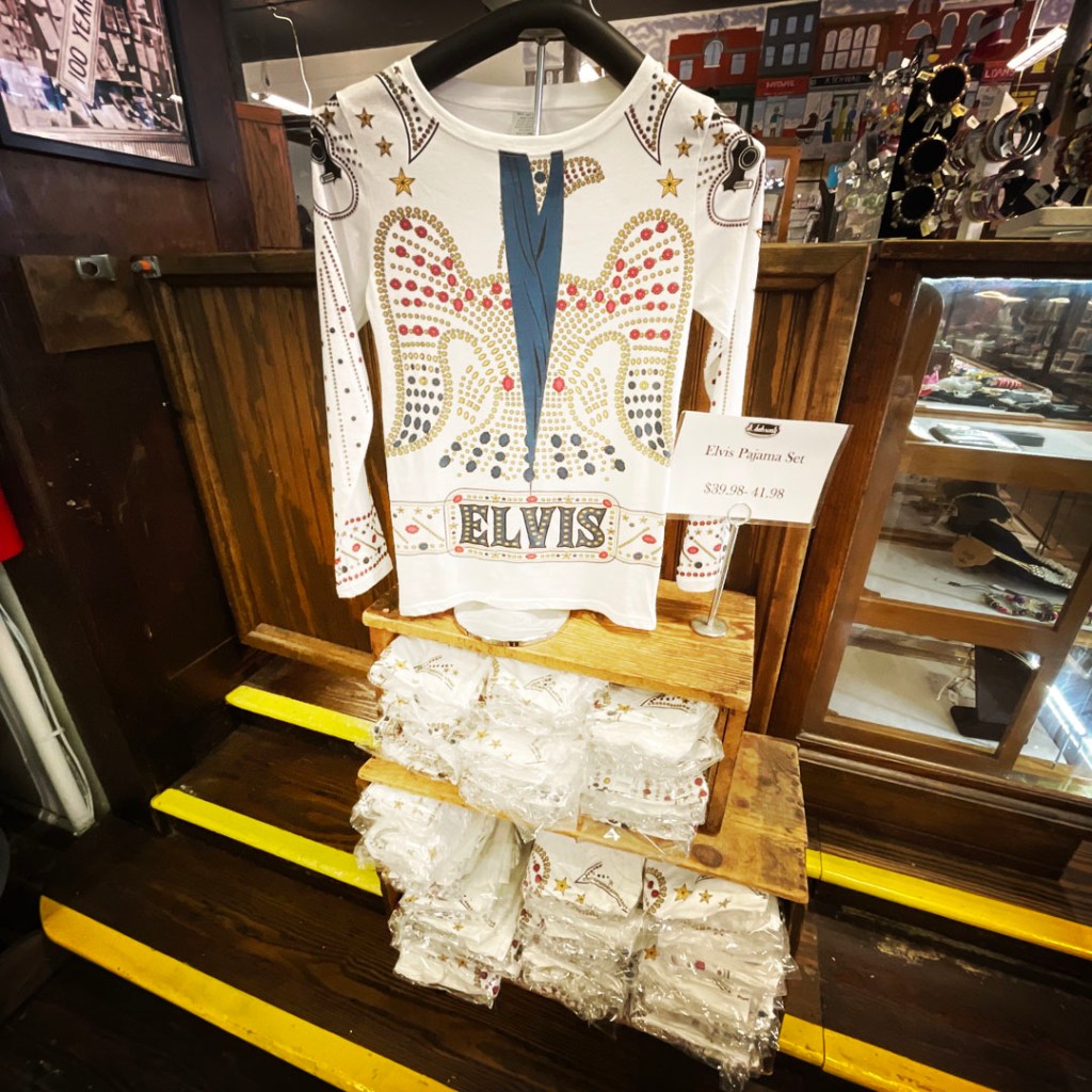 Elvis est partout, du slip aux déco de noël, en passant par le mug et le porte-clé.