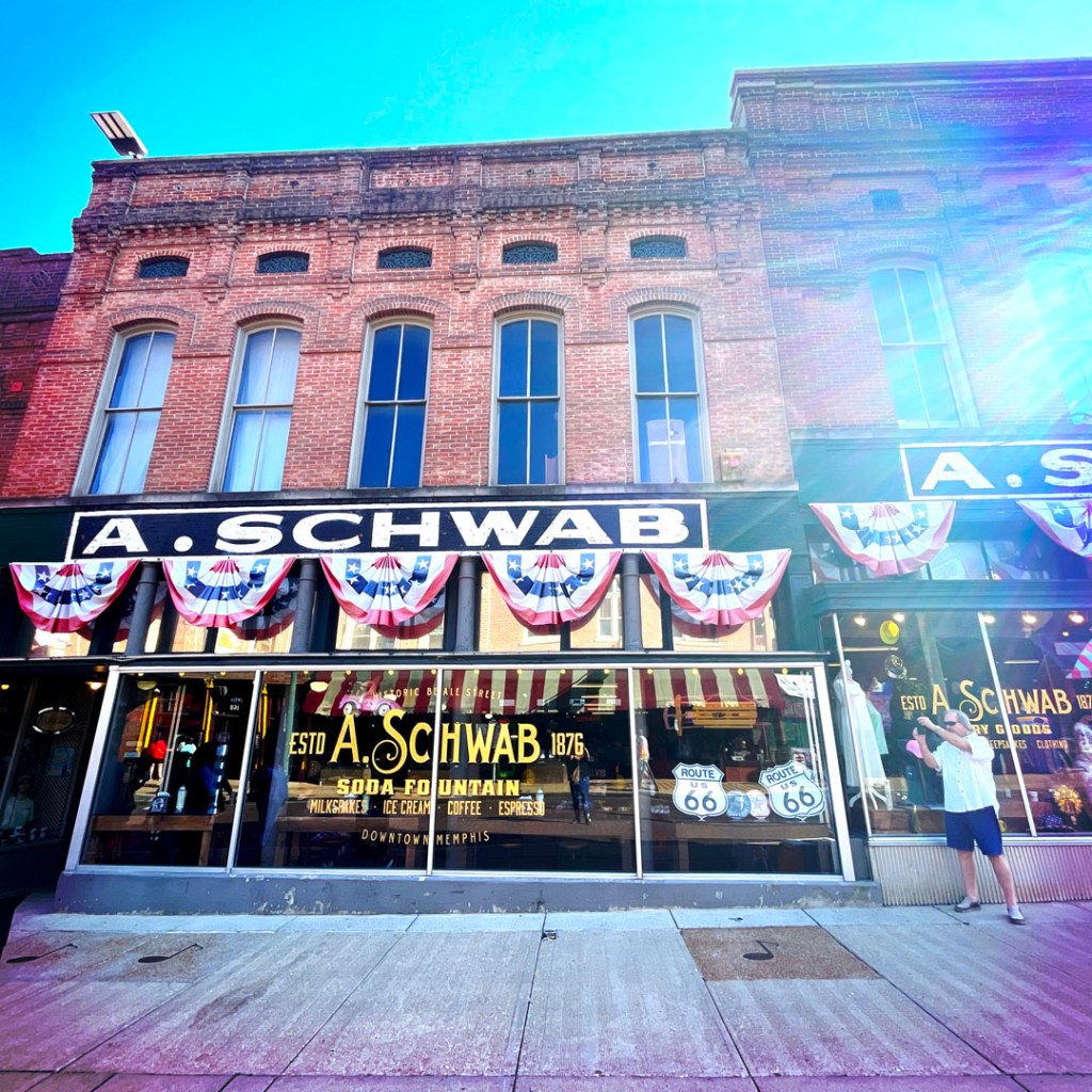 Il y a un magasin rigolo : A. SHWAB. Y’a tout à peu près. Des instruments, des gadgets, un bar, des chausettes, des habites classes, des t-shirts bien et/ou ringardos, des bonbecs, un petit musée car il a ouvert en 1876. Y’a même un rayon franc-maçon, mais c’est précisé qu’il faut présenter sa carte de membre pour acheter une casquette ou un pins. Fichtre.