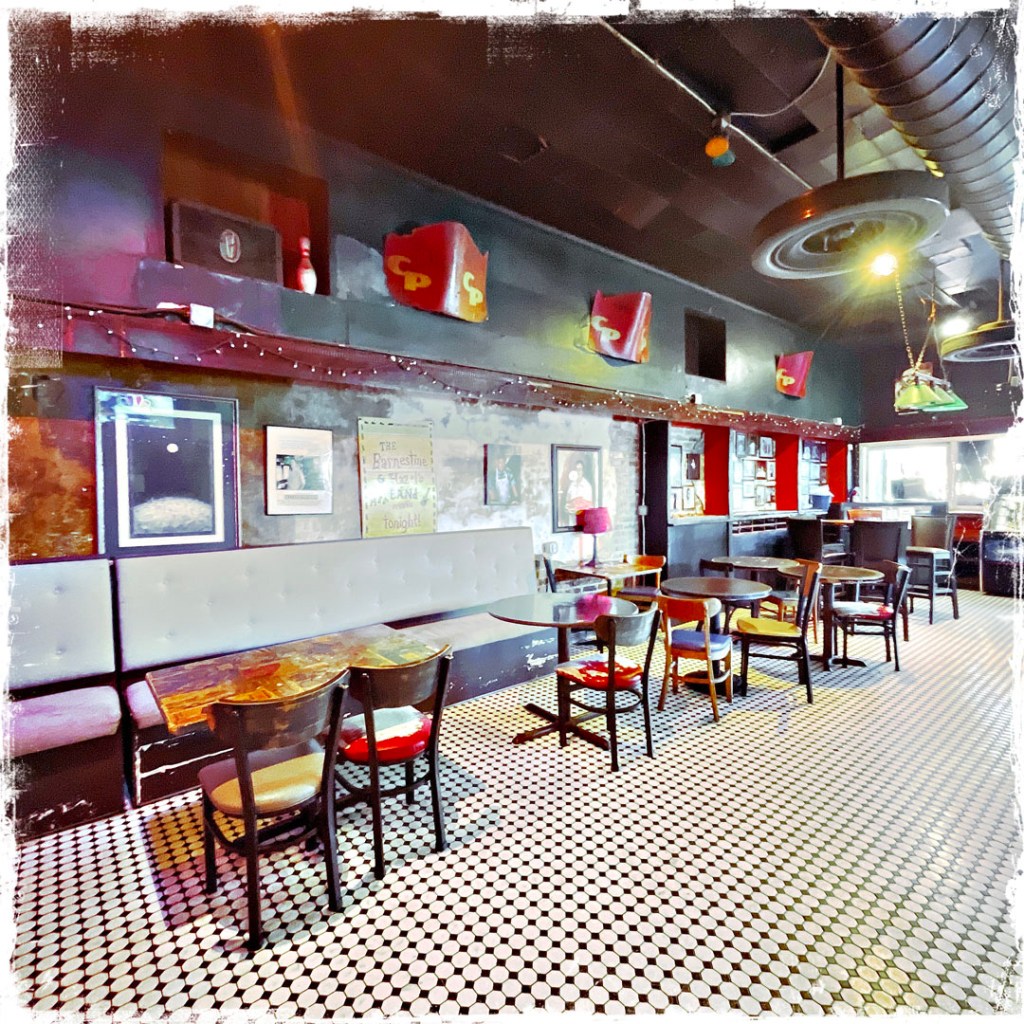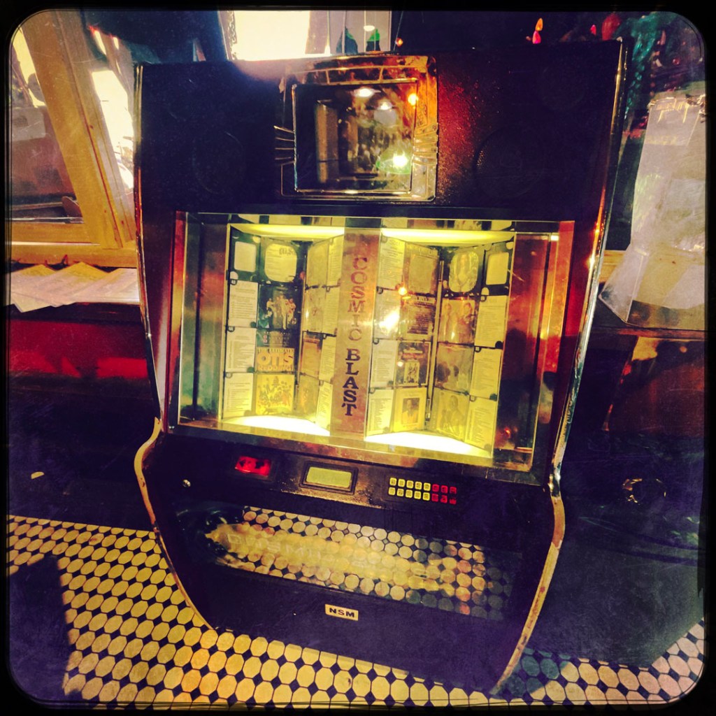 En revanche, malgré l’addition déconcertante, cet endroit est Formidable. Avec un grand F. Quand on arrive devant, on dirait une vieux magasin brocante pourri fermé au public. Dedans, c’est assez grand. Je Le RDC a un grand comptoir, un juke box super, des tables, l’ambiance est tamisée et y’a que des chansons bien dans le juke box.