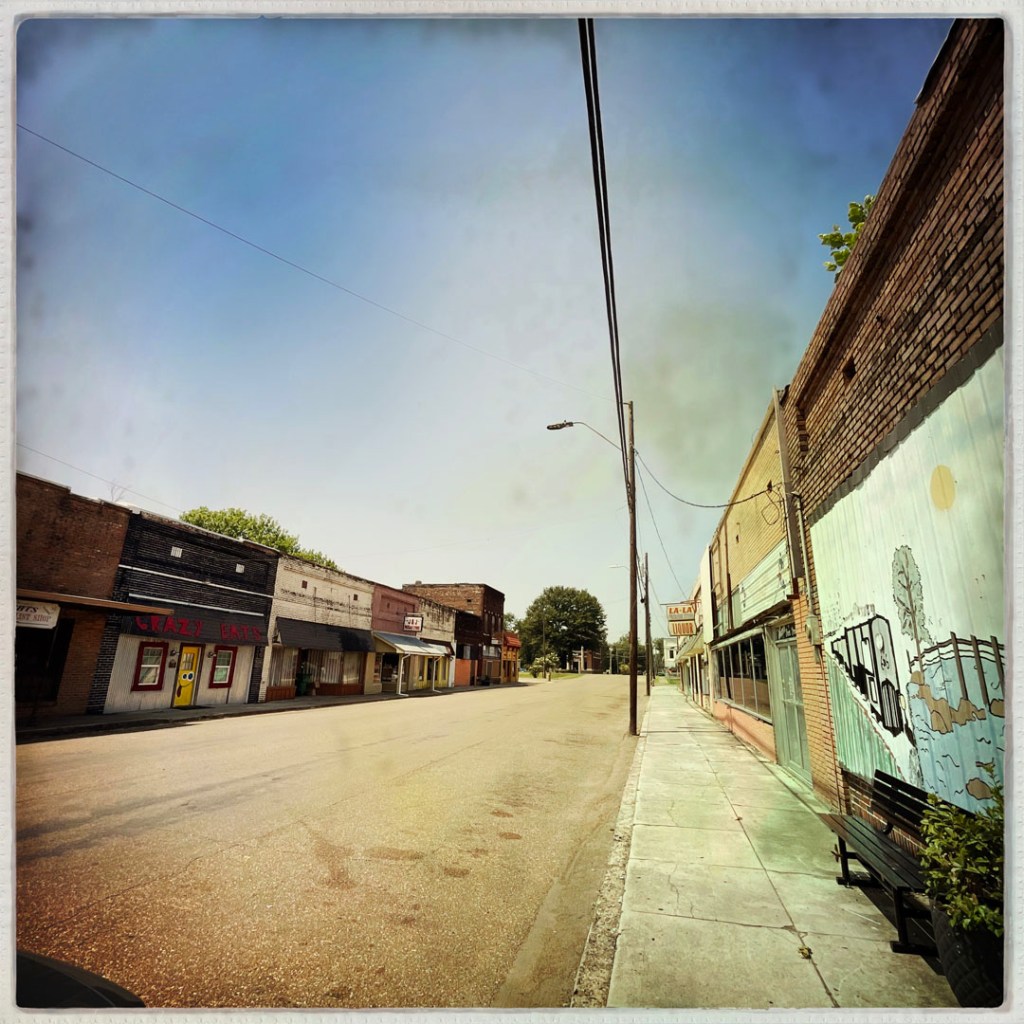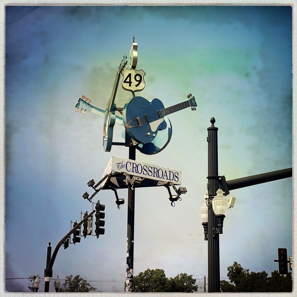 C’est à un croisement, dans cette ville, que Robert Johnson aurait vendu son âme au diable en échange de talent (je la fais courte). C’est là qu’est né le blues. On s’arrête le temps de quelque photo dans l’air humide. On n’a rien vendu, mais je le regrette un peu.