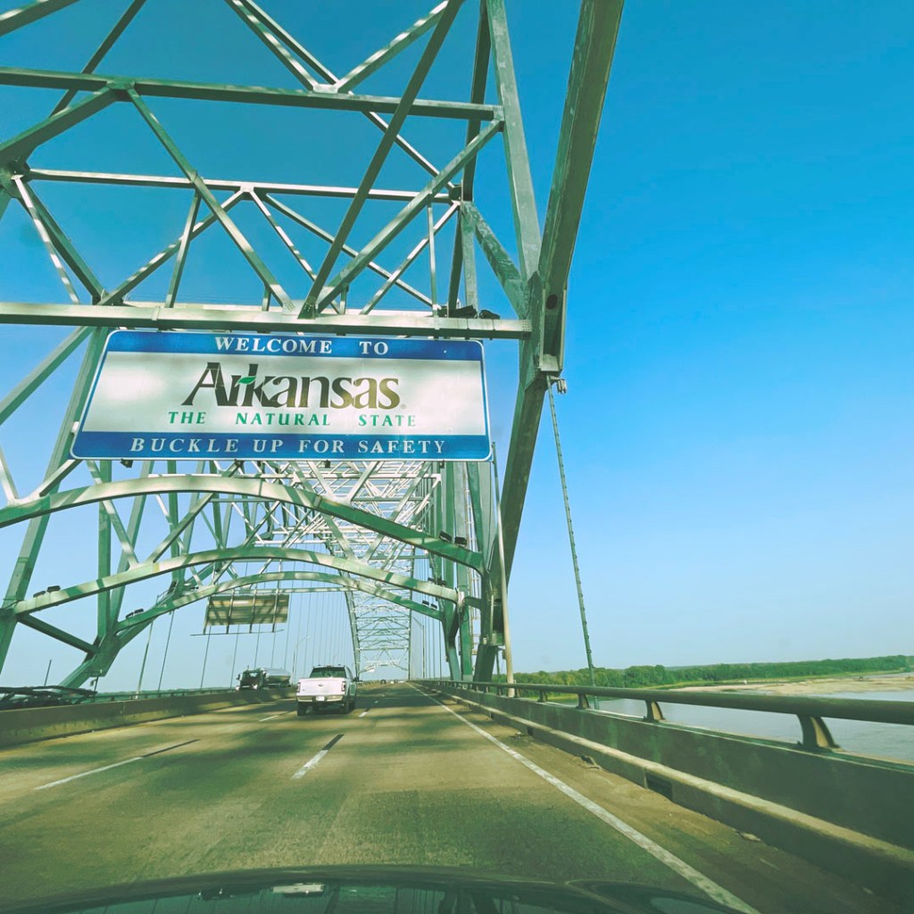Je ne sais pas si je l’ai déjà dit mais Manu un genre de to-do list : il veut être allé dans les 50 états de l’Amérique. Il se trouve que l’Arkansas est de l’autre côté du Mississippi, ça fait un détour d’à peine 30 minutes. Allons petit déjeuner en Arkansas pour faire une croix de plus.