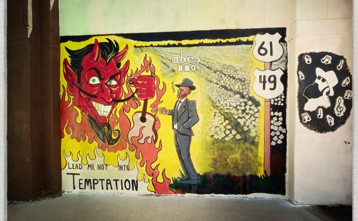 C’est à un croisement, dans cette ville, que Robert Johnson aurait vendu son âme au diable en échange de talent (je la fais courte). C’est là qu’est né le blues. On s’arrête le temps de quelque photo dans l’air humide. On n’a rien vendu, mais je le regrette un peu.