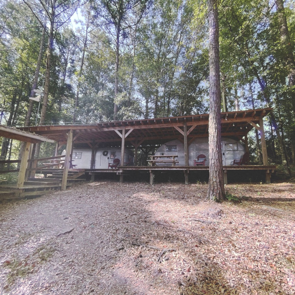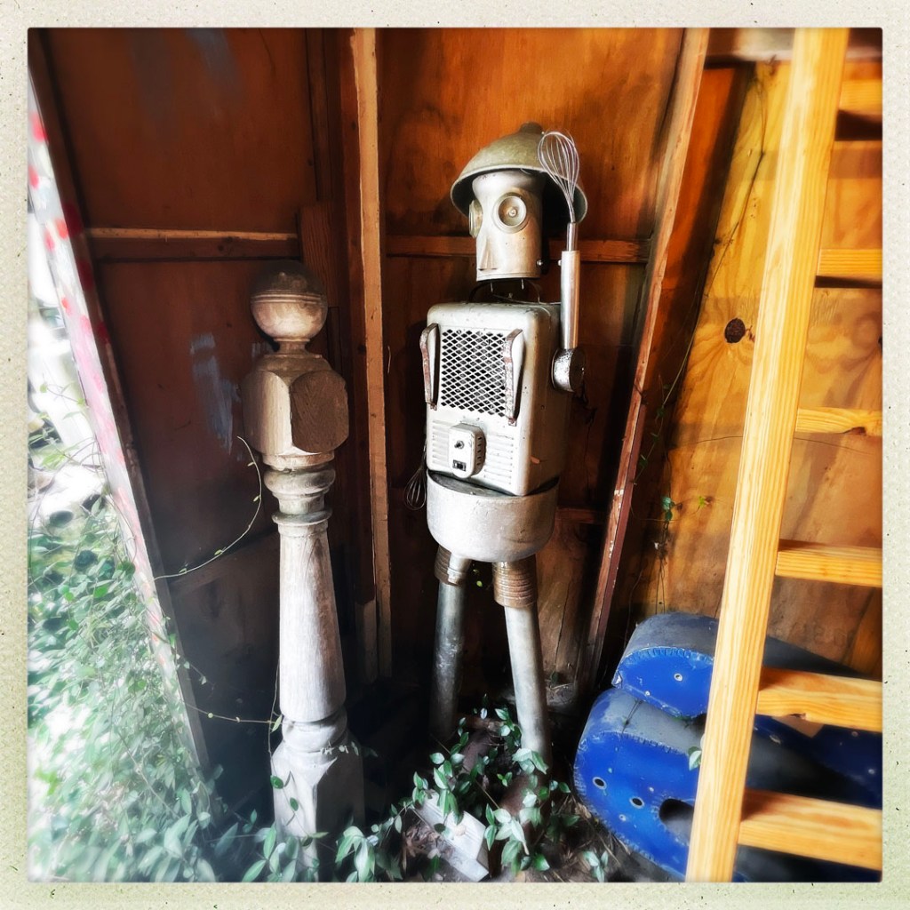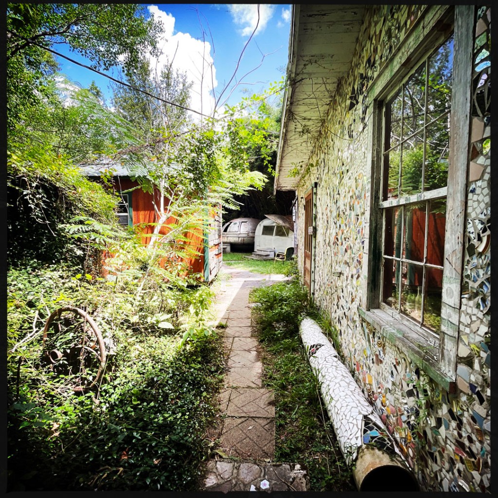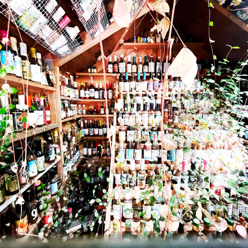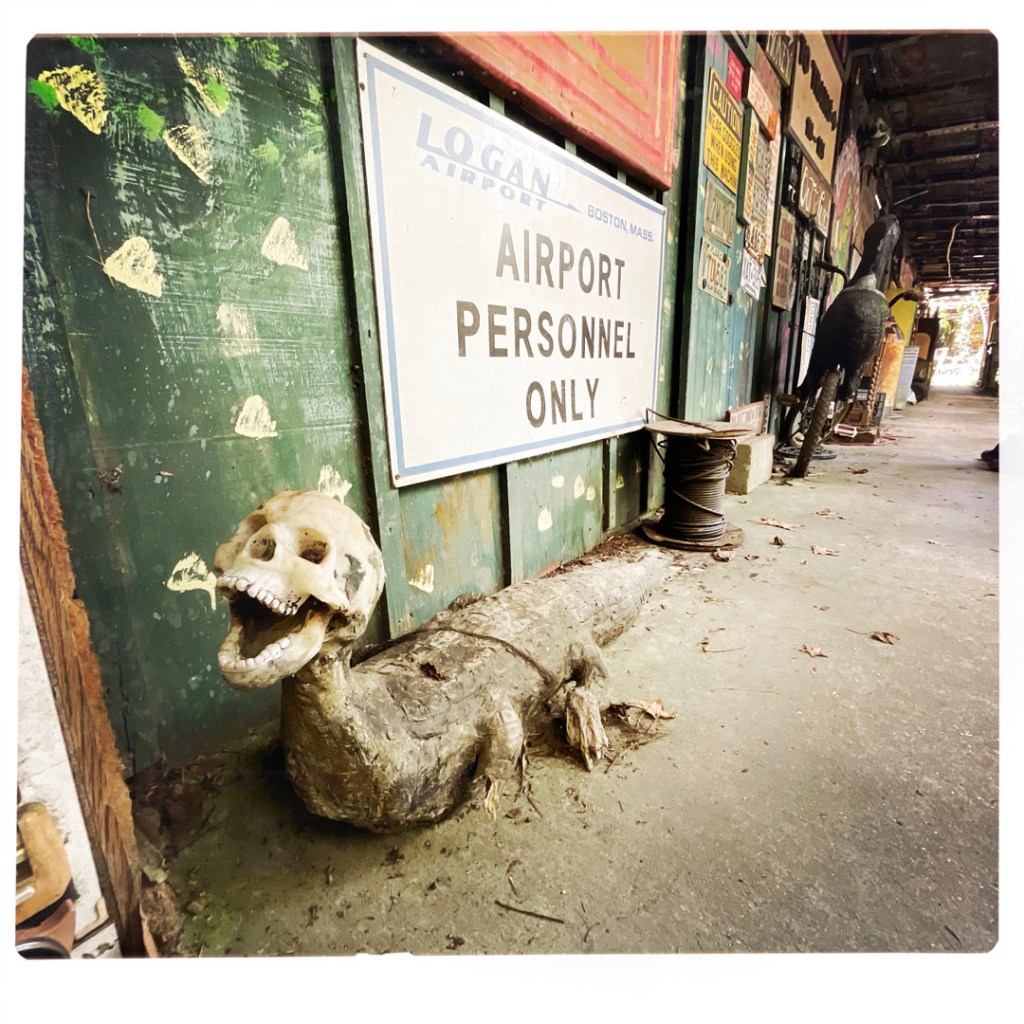 On retourne dehors, y’a une autre cabane (c’est grand en fait !), et puis un jardin avec une soucoupe volante, la maison des sauces piquantes, et le BASSIGATOR (un mélange de perche – le poisson – et d’alligator). En sortant, j’ai demandé au proprio qui l’avait pêché, il m’a dit « I did. If you want one, you have to go fishing. » Ce monsieur est vraiment drôle.