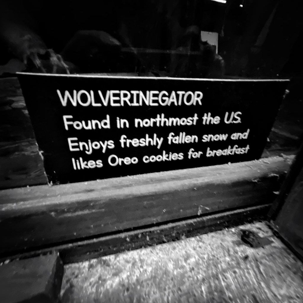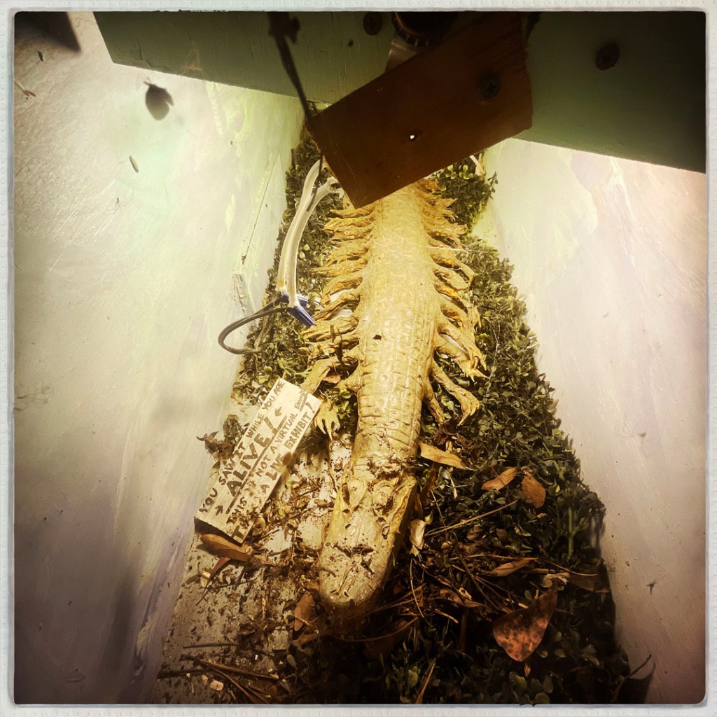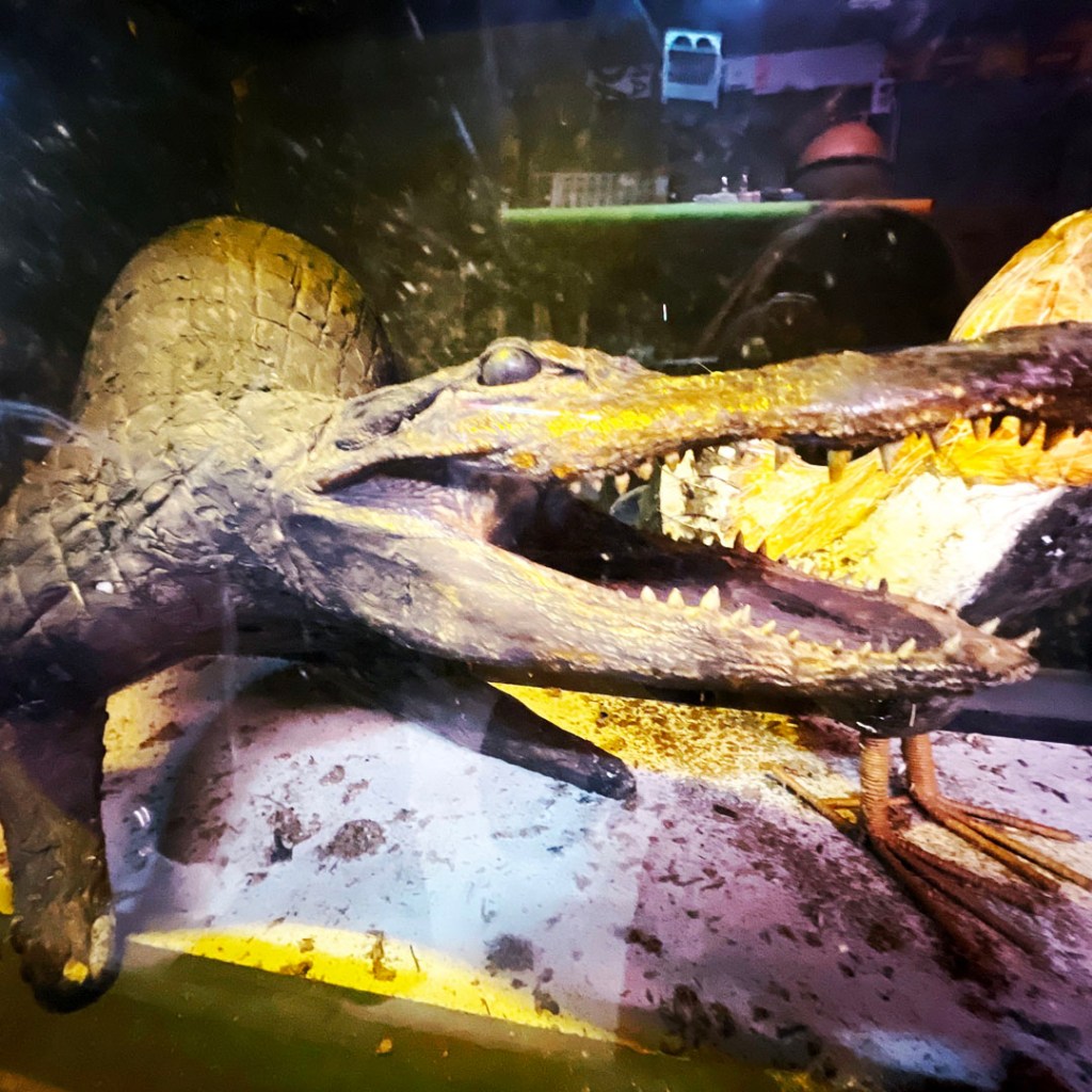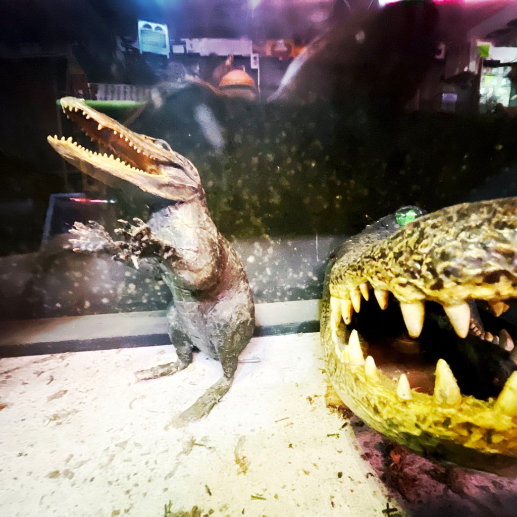 Il y a aussi le 32 foot alligator. La blague en français marche un peu moins. Mais dans la boite où ça annonce cet alligator, au lieu d’un alligator géant, c’est bien un alligator avec 32 pattes. Pardon mais je trouve ce monsieur vraiment vraiment drôle.