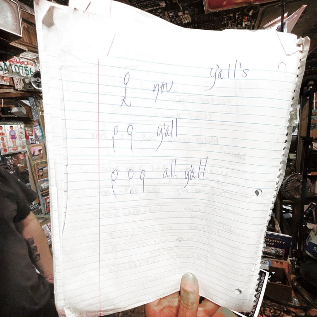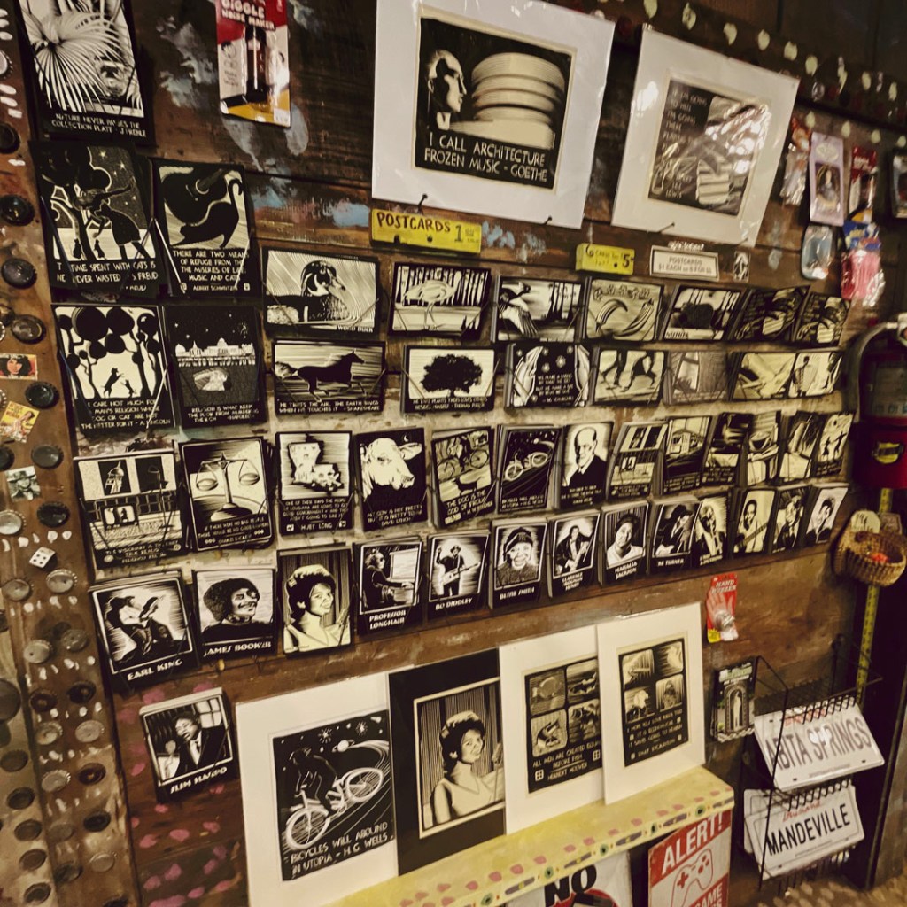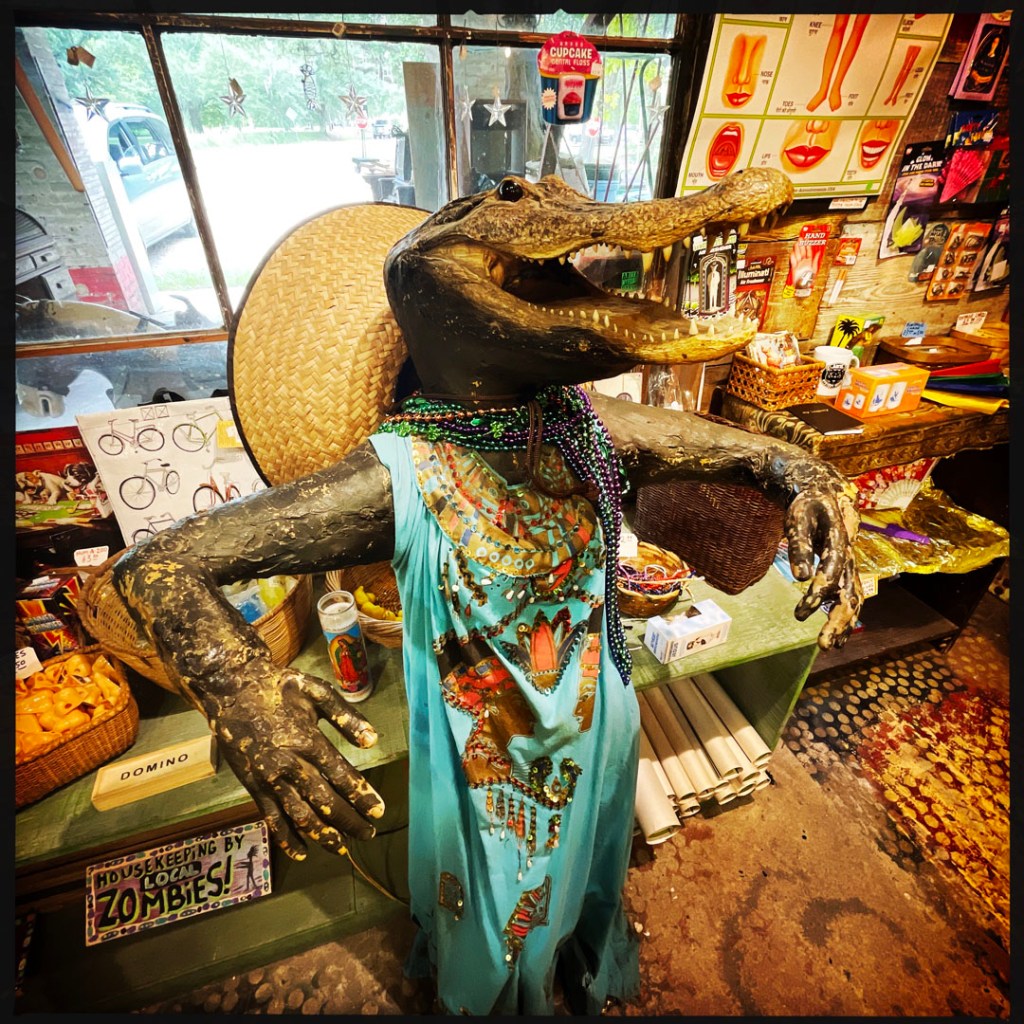 En partant, on discute donc avec le monsieur, entre temps une dame très sympa est arrivée. On cause voyage, la France, ils nous conseillent d’aller manger dans un truc pas loin, qui est super. Ils nous apprennent des mots de Louisiane. Bref, c’est vraiment cool.