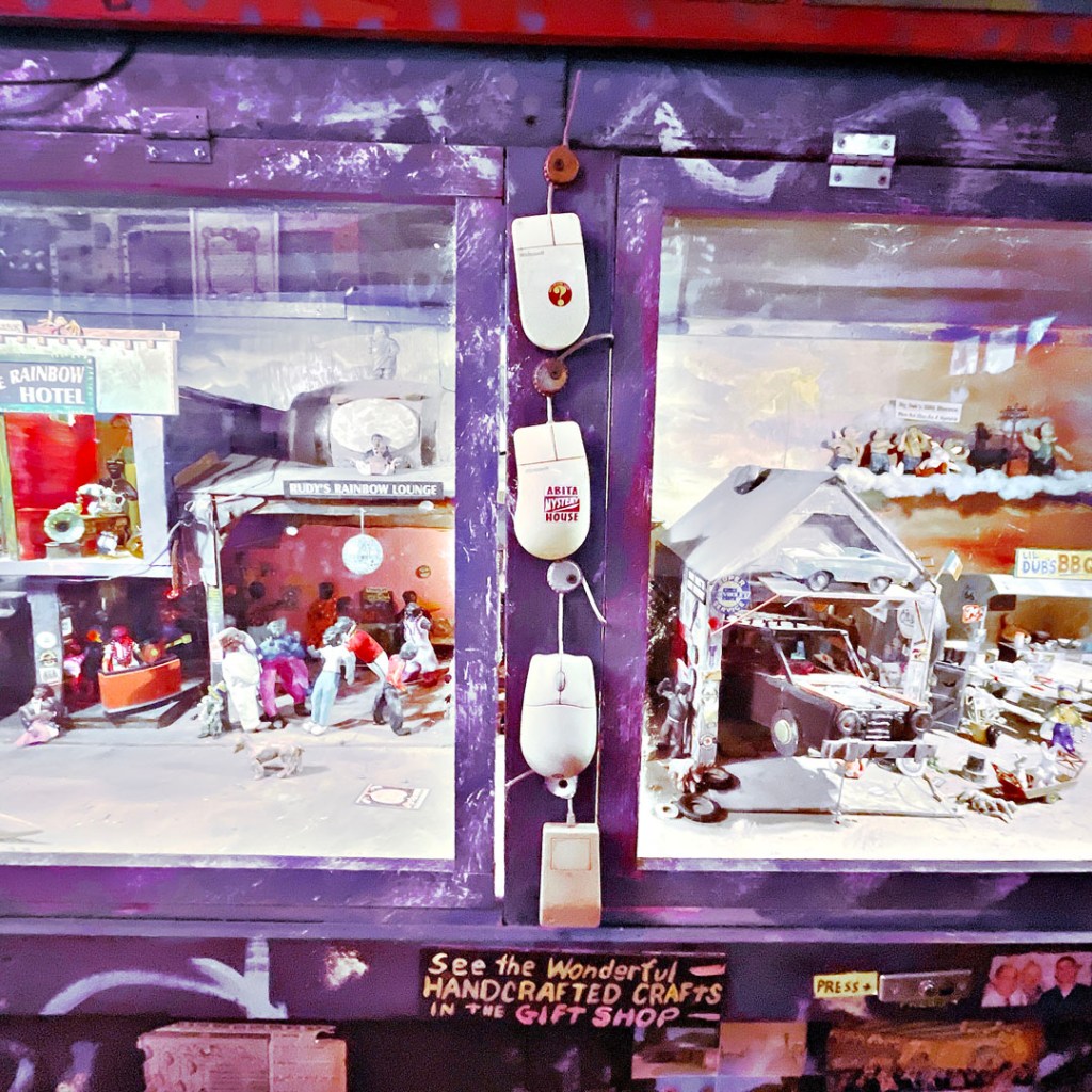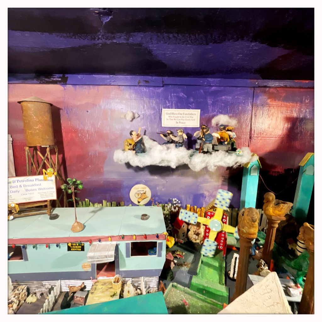 Also known as the UCM Museum is a roadside attraction in Abita Springs near New Orleans. It is a folk art environment with 1000s of found objects, and home made inventions. Tourists see a miniature Southern town with push-buttons that activate animated “displays.” On exhibit are odd collections, memorabilia, pure junk, and old arcade machines that are fun to play. Abita Springs, Louisiana is a historic small town known for its brewery, spring water, and bicycle trails.