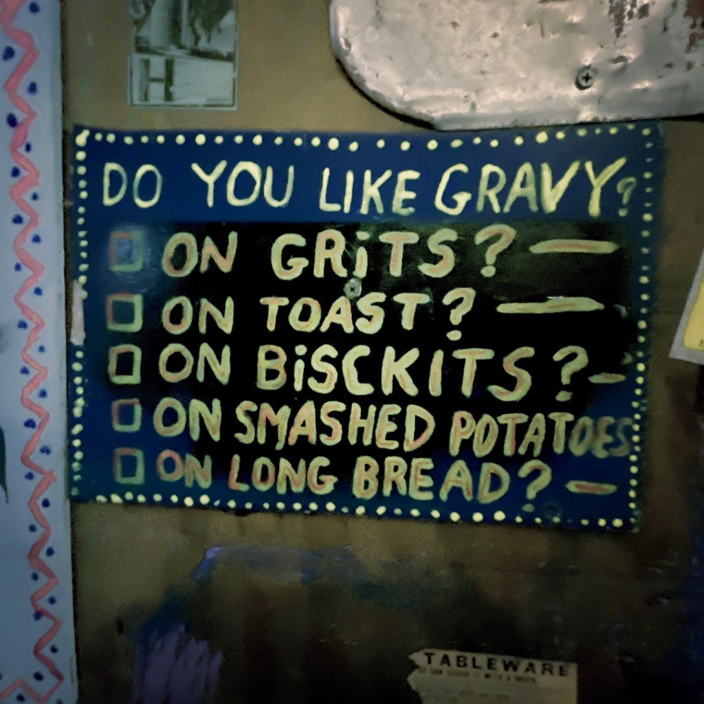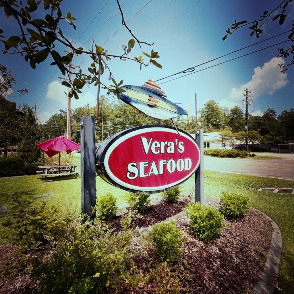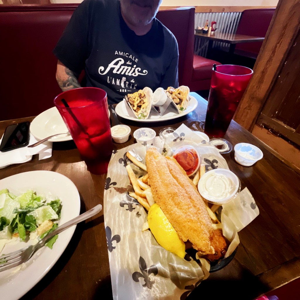 On va là où ils nous ont dit de manger. Chez Vera. Y’a du catfish. Je n’ai jamais mangé de poisson-chat, alors je prends ça. J’aime le poisson et les chats. Et de fait, c’est très très bon. Manu était certain que c’était bourré d’arêtes. Y’a pas une arête. (je pensais qu’il savait tout, finalement non, il n’y connaît rien poisson-chat).