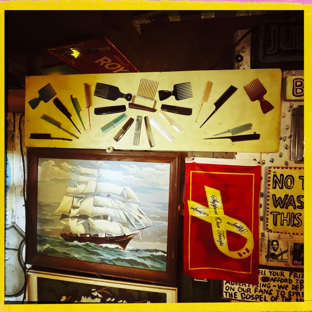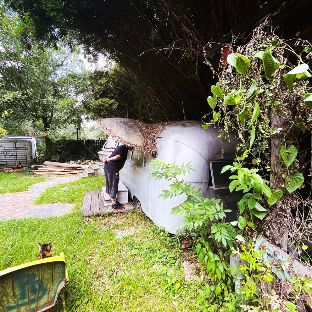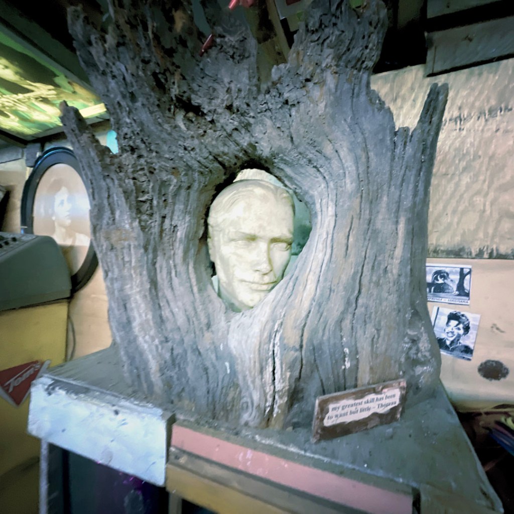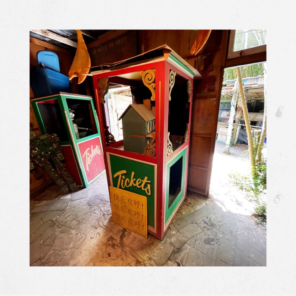 À la seconde où on arrive, j’aime déjà cet endroit. Une grosse cabane en bois. Y’a du bordel dehors, un super capharnaüm. Y’a des tas de panneaux qui invite à rentrer, à visiter, à prendre des photos, à tout.