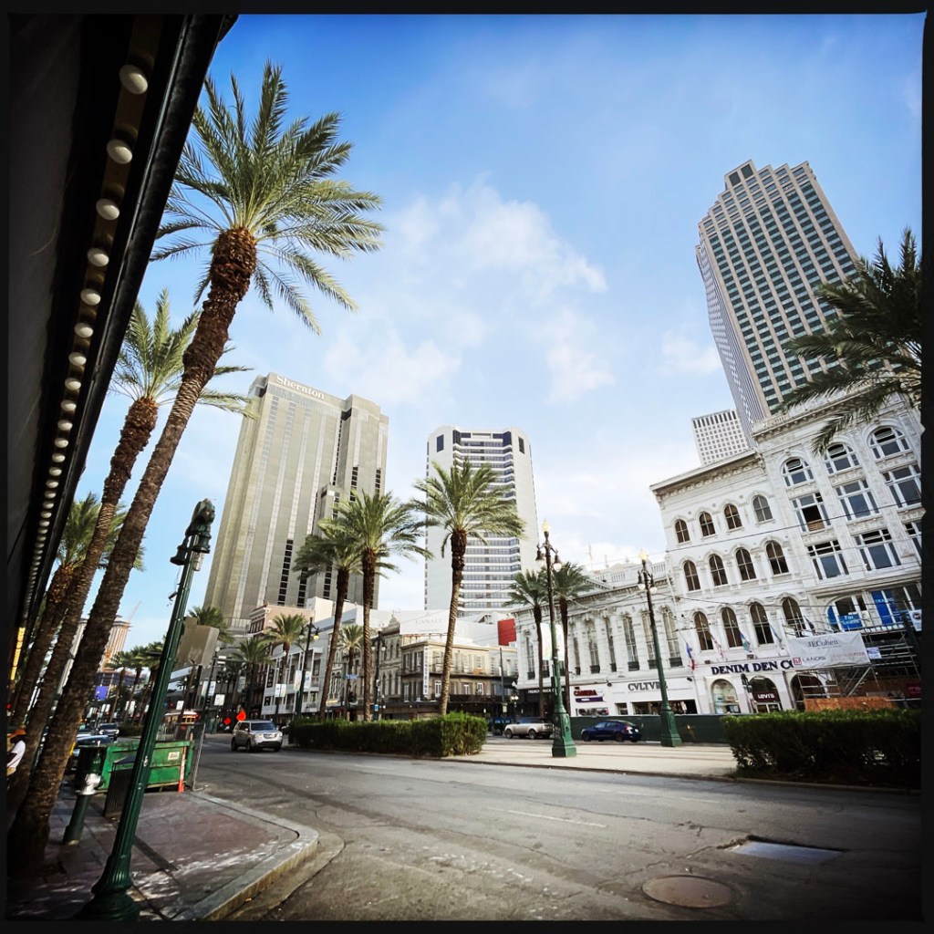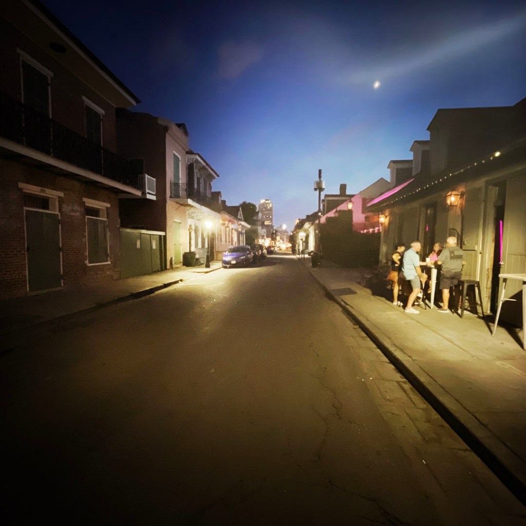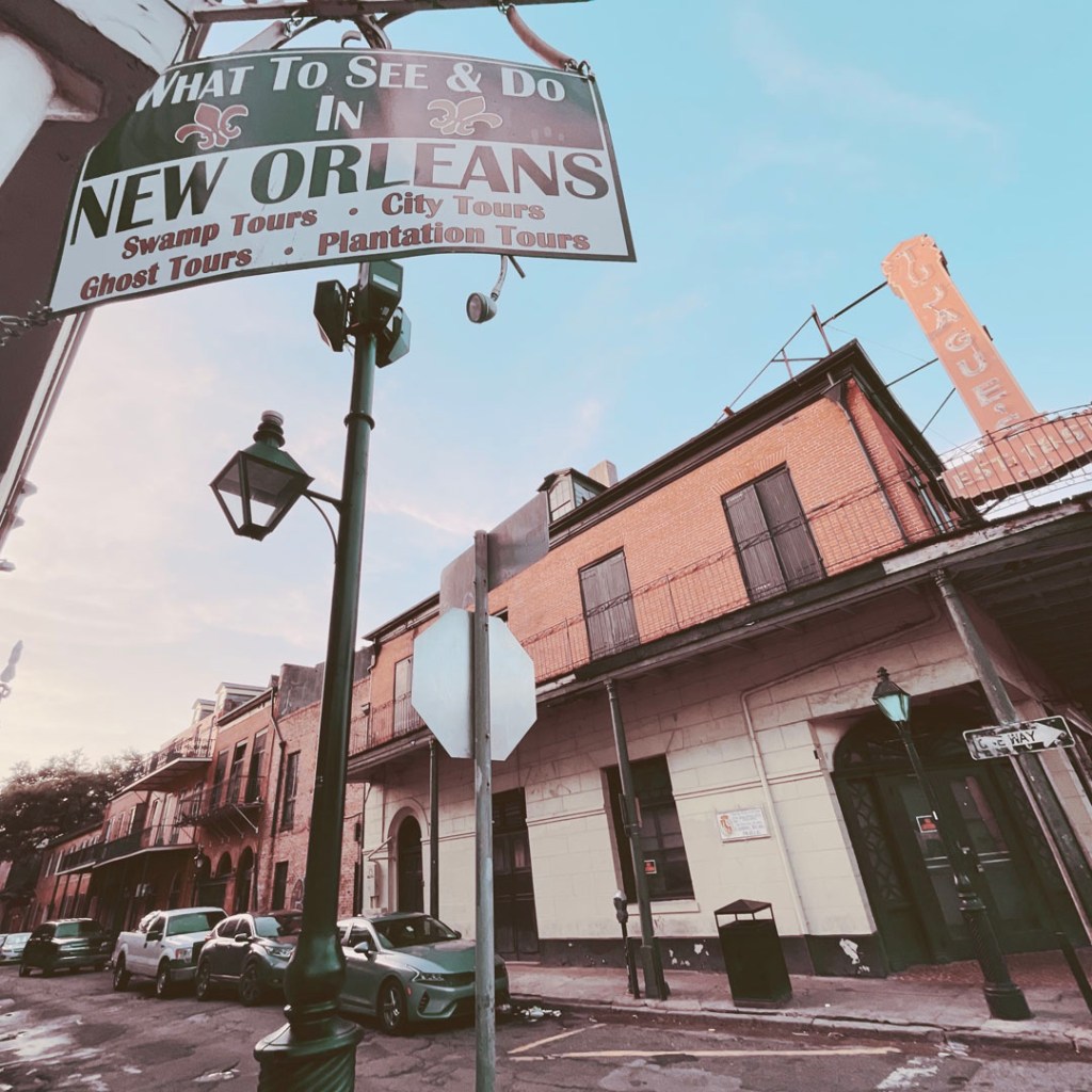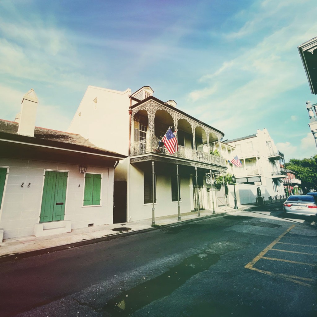 On termine la route pour New Orleans. Petit à petit le paysage change. Les noms des villes et des rues deviennent presque français. Y’a du bayou partout. Idem, on passe de maisons chics au village de mobiles homes aux maisons pétées partout.