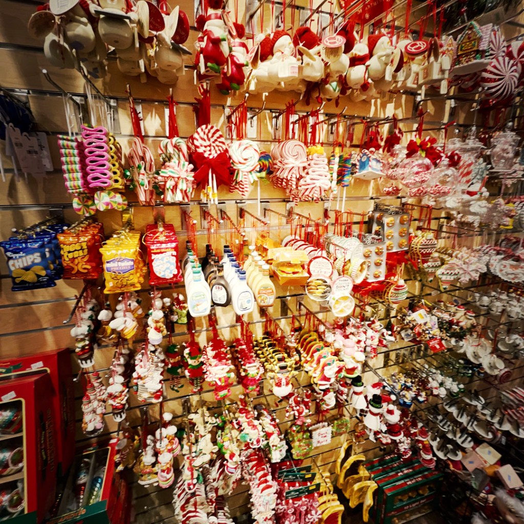 Et moi, j’ai trouvé un magasin de décorations de noël OUFISSIME. Bon sang de bois, si je voulais acheter tout ce qui me fait envie, il faudrait que j’hypothèque mon appart. Je repars. de là, la mort dans l’âme, avec deux achats très (trop) raisonnables. Mais rendez-vous compte, il. y avait TOUT. Des paquets. Des chips, un Docteur Maboul, des sirènes mâles un peu sexy, des animaux, tous les animaux, des squelettes. Je suis à deux doigts d’aller au casino pour me faire un budget déco X-MAS.