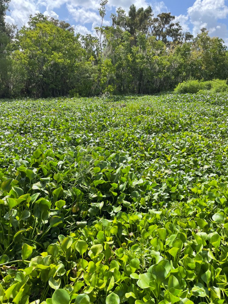 Il y a des jolis plantes qui flottent, qui ont été importées de Chine pour filtrer l’eau. Ça ressemble un peu à du pak choi tout vert. C’est un échec partiel, car finalement, c’est beaucoup trop invasif, ça bouche des canaux et ils doivent en buter sans cesse. Mais ça fait beau, et ça filtre… un peu.