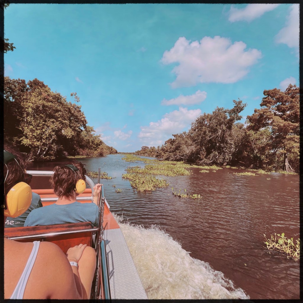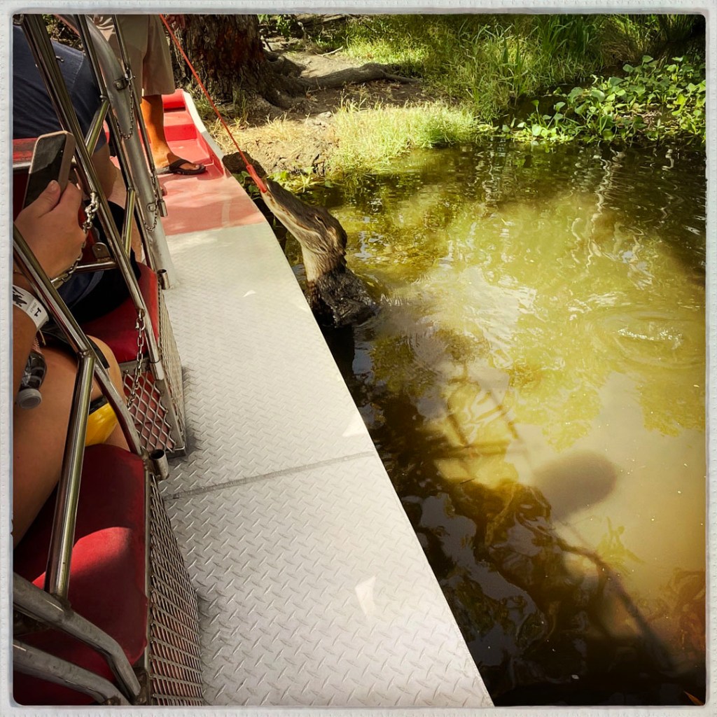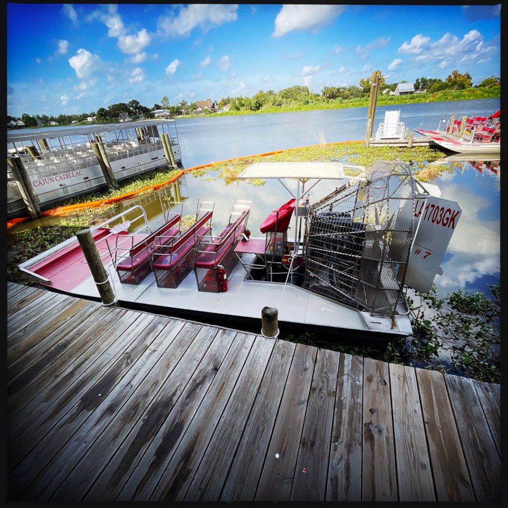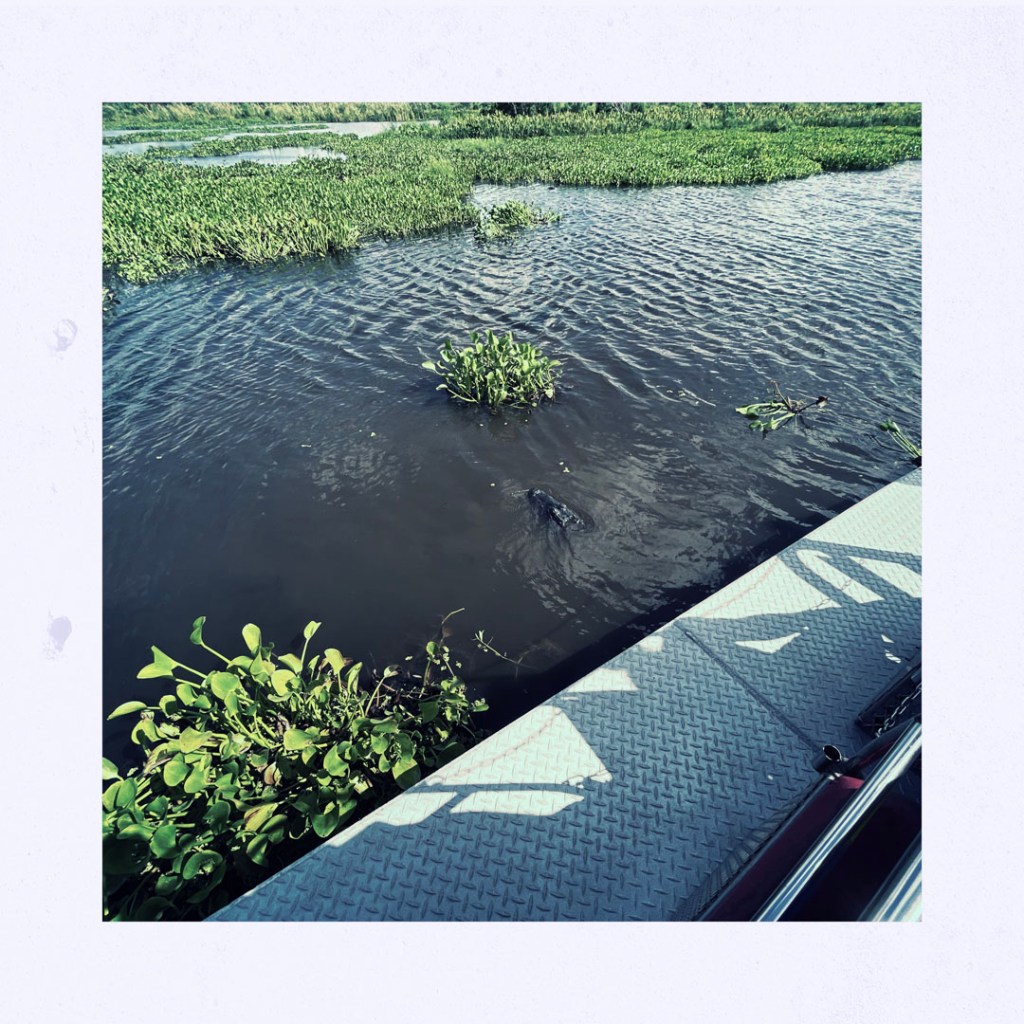 J’ai réservé il y a des mois pour cette balade. On faire du Airboat, ces bateaux typiquement bayouesque où le moteur n’est pas immergé, et ils avancent grâce un gros ventilateur. On apprendra même aujourd’hui qu’ils peuvent naviguer sur terrain sec qui besoin (mais ça abime alors ça se fait bof).
