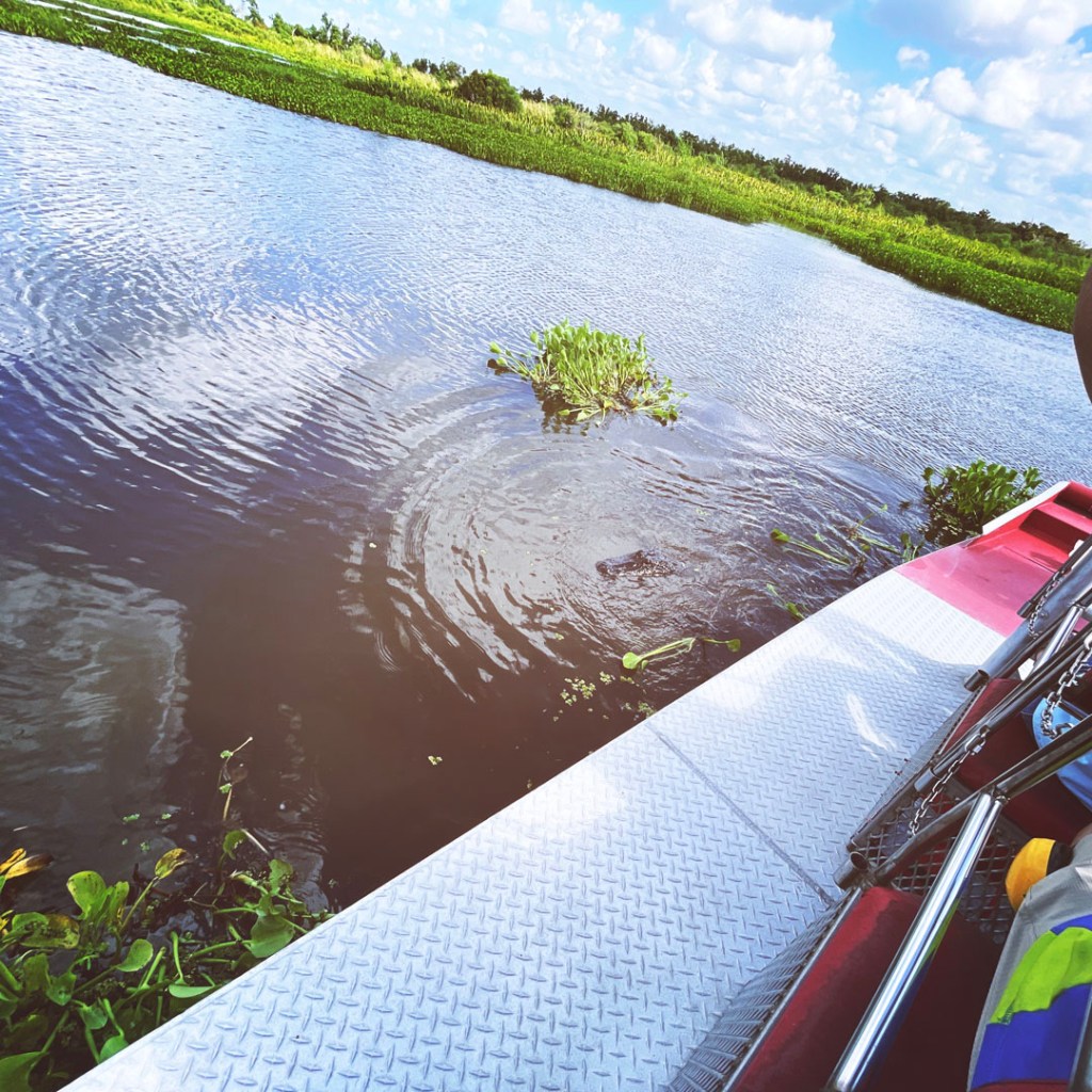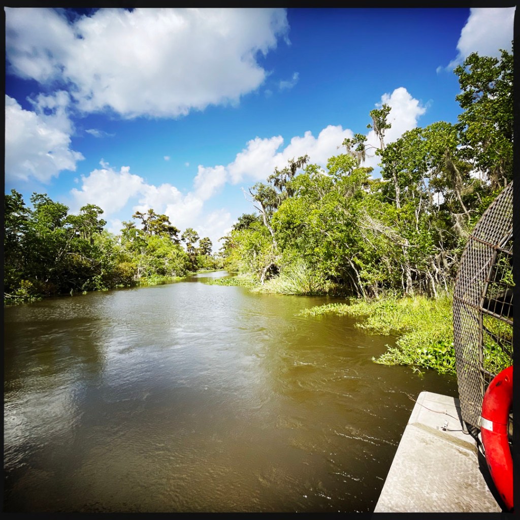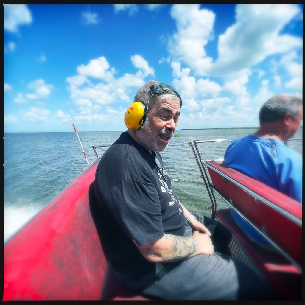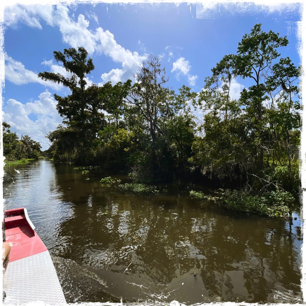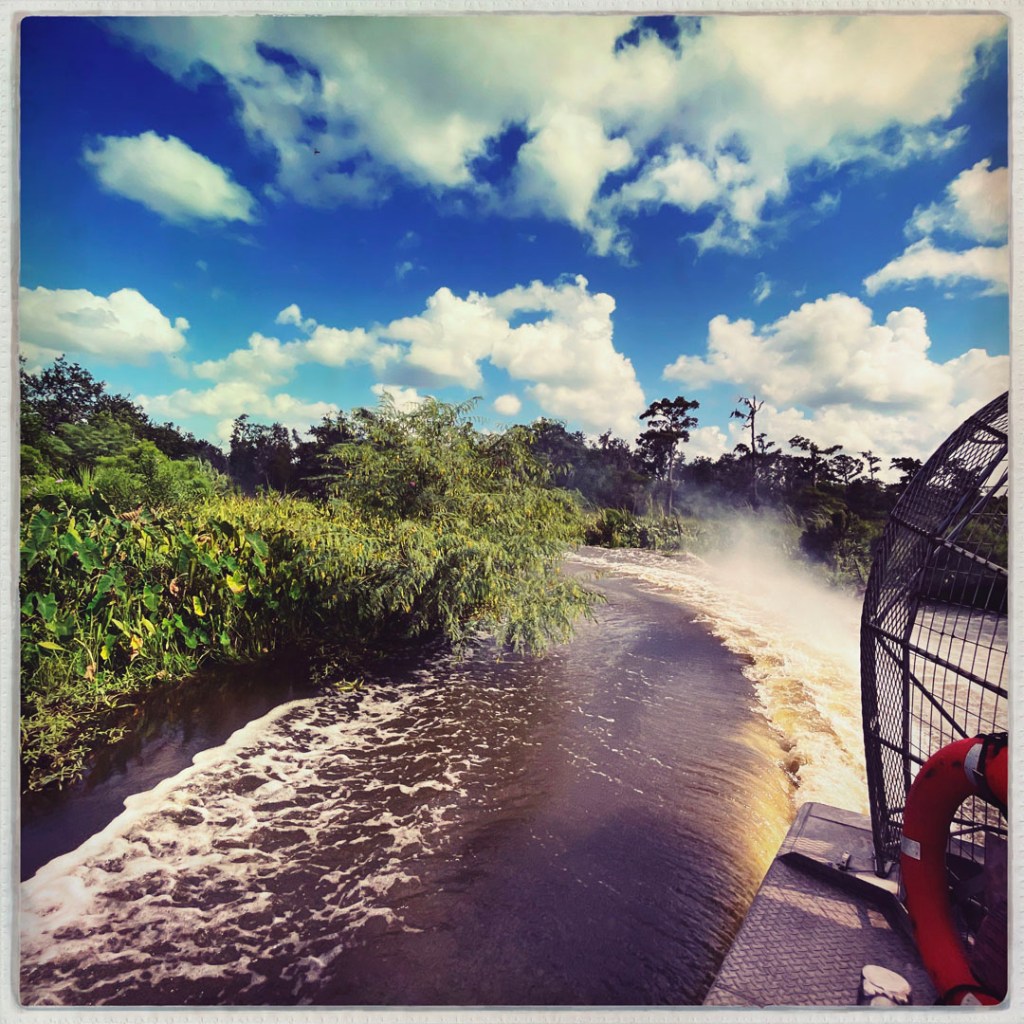 J’ai réservé il y a des mois pour cette balade. On faire du Airboat, ces bateaux typiquement bayouesque où le moteur n’est pas immergé, et ils avancent grâce un gros ventilateur. On apprendra même aujourd’hui qu’ils peuvent naviguer sur terrain sec qui besoin (mais ça abime alors ça se fait bof).