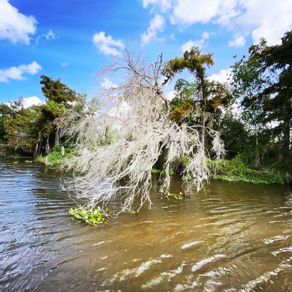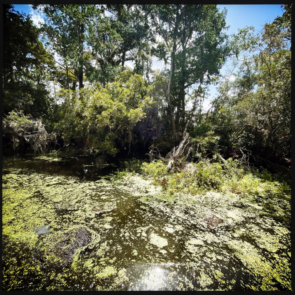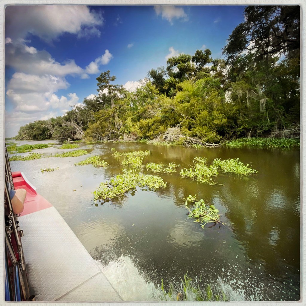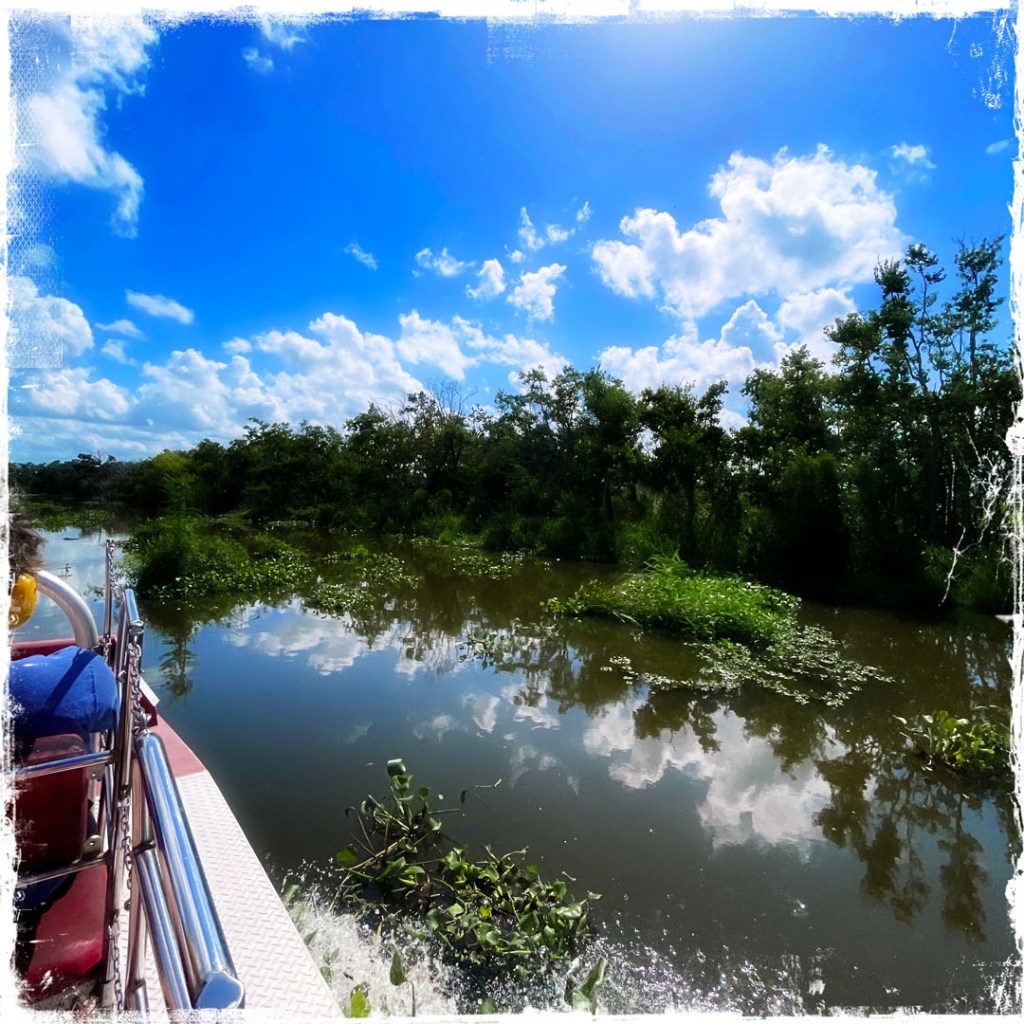 J’ai réservé il y a des mois pour cette balade. On faire du Airboat, ces bateaux typiquement bayouesque où le moteur n’est pas immergé, et ils avancent grâce un gros ventilateur. On apprendra même aujourd’hui qu’ils peuvent naviguer sur terrain sec qui besoin (mais ça abime alors ça se fait bof).