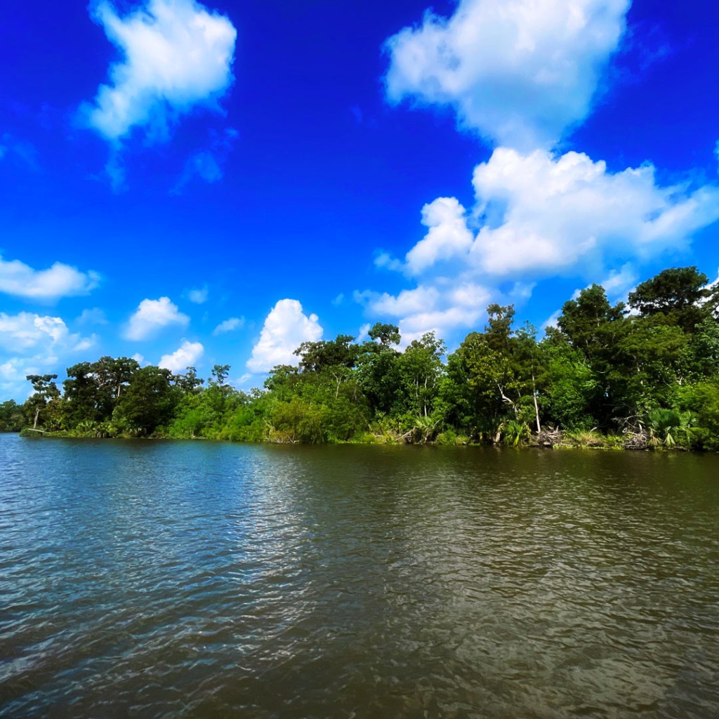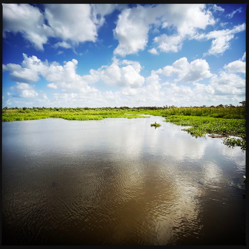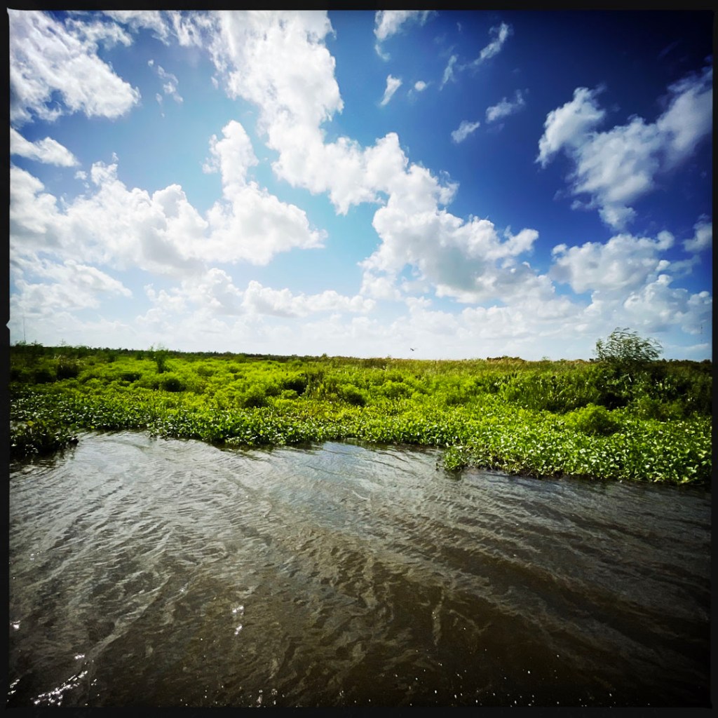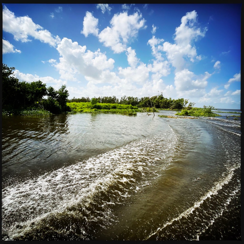 On quitte le port pour arriver dans une grande étendue, le Lake Salvador qui est entouré de petites embouchure qui mènent au coeur du bayou.