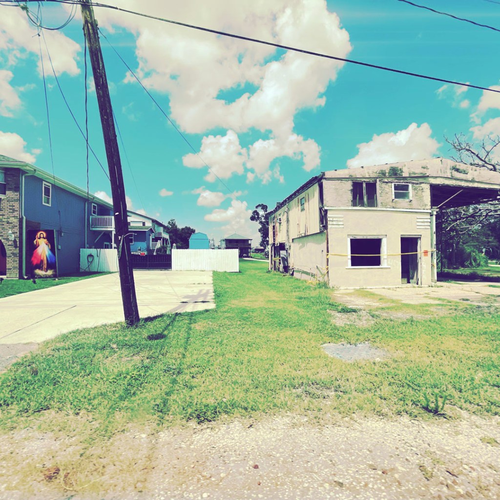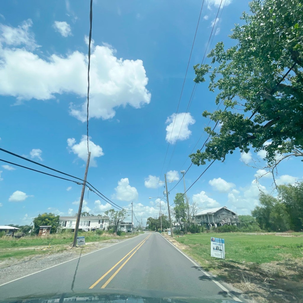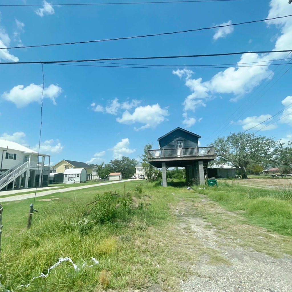 Il y a deux ans, il y a eu un énorme ouragan, Ida, plus puissant que Katrina. Mais il dit qu’on a beaucoup parlé de Katrina parce que ça avait touché la Nouvelle Orleans, mais que ici, ça a anéanti bien plus de terres et de maisons. La sienne, a eu de l’eau jusqu’aux ampoules du plafond. Il a logé dans un camp pendant 9 mois, pendant qu’il réparait tout. Pour avoir sa maison surélevée, faut faire une demande, y’a une liste d’attente. C’est très long. On sent la colère et l’inquiétude dans sa voix quand il parle des ouragans et de leur gestion.