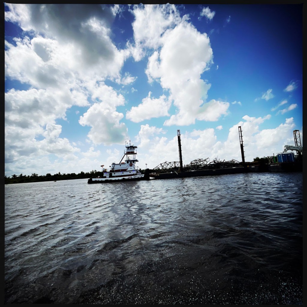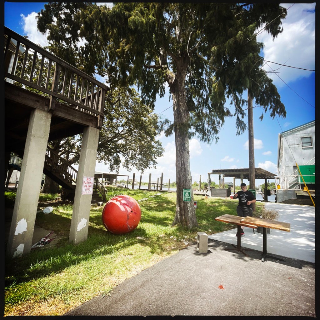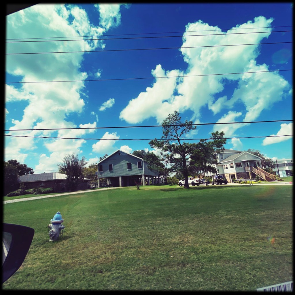 Il y a deux ans, il y a eu un énorme ouragan, Ida, plus puissant que Katrina. Mais il dit qu’on a beaucoup parlé de Katrina parce que ça avait touché la Nouvelle Orleans, mais que ici, ça a anéanti bien plus de terres et de maisons. La sienne, a eu de l’eau jusqu’aux ampoules du plafond. Il a logé dans un camp pendant 9 mois, pendant qu’il réparait tout. Pour avoir sa maison surélevée, faut faire une demande, y’a une liste d’attente. C’est très long. On sent la colère et l’inquiétude dans sa voix quand il parle des ouragans et de leur gestion.