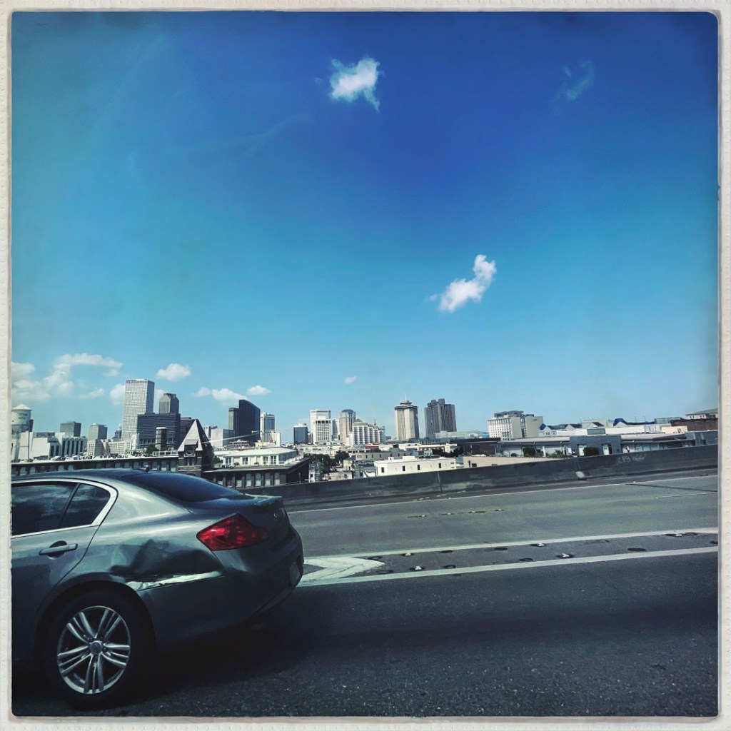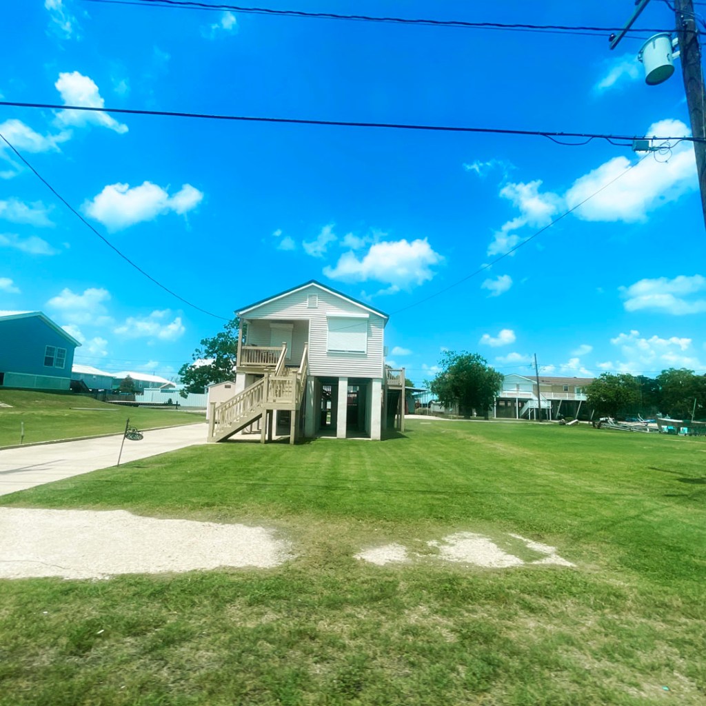 La clim qui fait un bruit de malade, l’insomnie, la tentative de dormir par terre dans la salle de bain sur deux oreillers. Bref, 3h de sommeil et ce matin on se lève pour faire un tour en Airboat sur le bayou. Au début, je ne suis pas de très bonne humeur. Mais la route est cool, on passe le long des maisons cajun sur pilotis, c’est beau, même si c’est là pour rappeler qu’ici, il faut se protéger des ouragans.