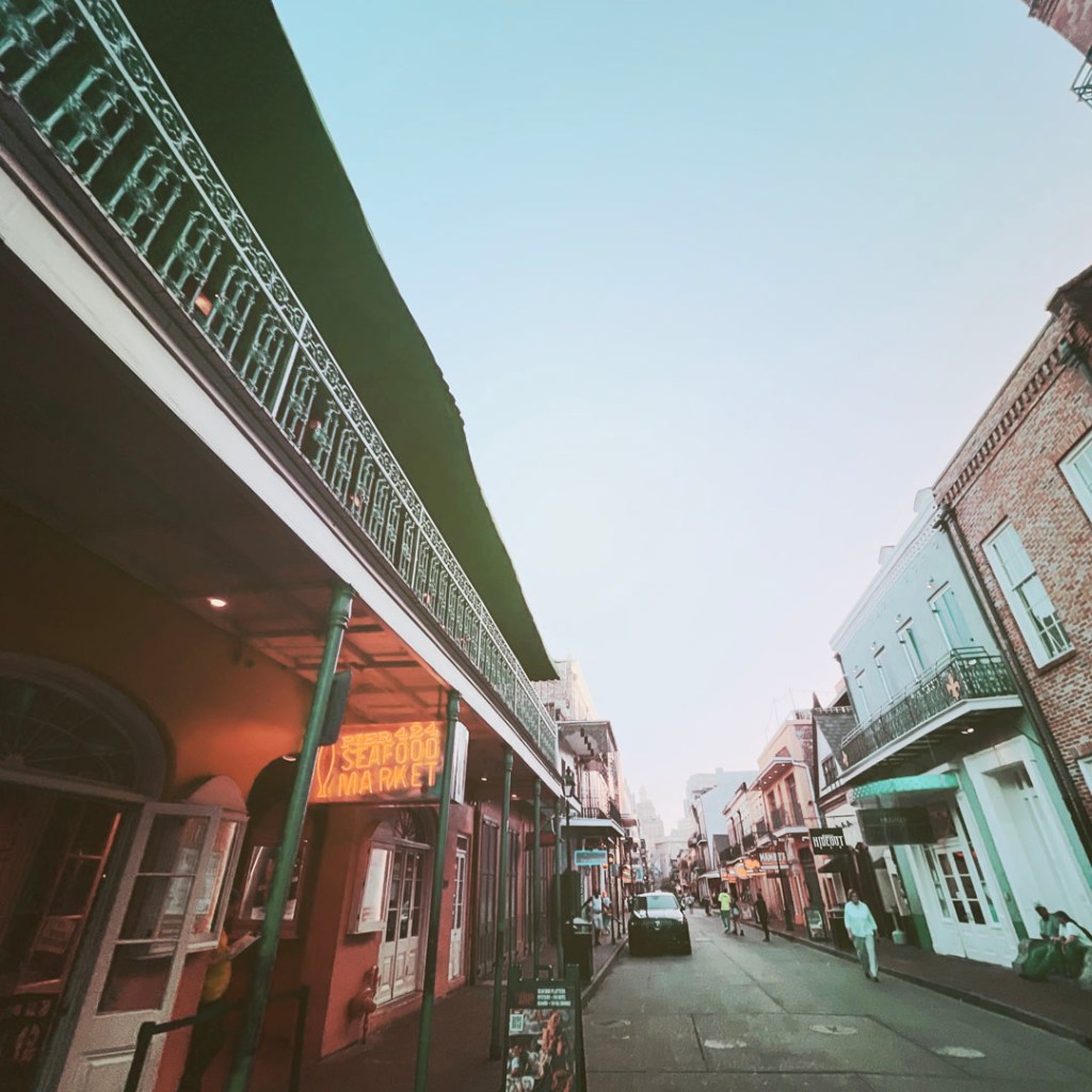 Balade dans cette drôle de ville si belle. On repasse chez Marie Laveau pour prendre quelques souvenirs. Il est un peu plus tard qu’hier alors la musique commence à foutre un sacré bordel. On entend une reprise super de ‘Killing in the name’ au piano, hyper cool. On se dit qu’on va aller manger un gumbo mais avant on va aller boire un verre. On retourne à The Abbey la serveuse n’est pas la même qu’hier. Elle nous appelle « baby » (bon elle appelle tout le monde comme ça). La population est encore étonnante. les échanges parfois surréalistes.
