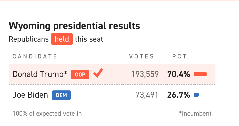 Voici les résultats des élections de 2020 dans le Wyoming :