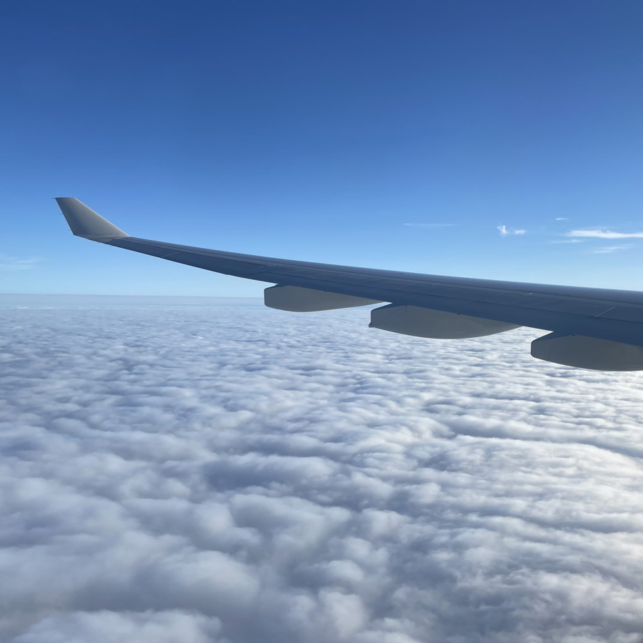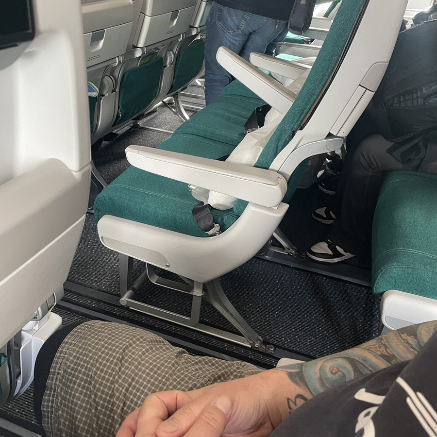 Le deuxième avion, pour 9h de vol est probablement un des moins confortable des avions pas confortables qu’on a pu testé avec les années. Quand le monsieur devant moi incline son siège pour dormir, je profite pleinement de mon écran qui se retrouve à 15 cm de mon visage.