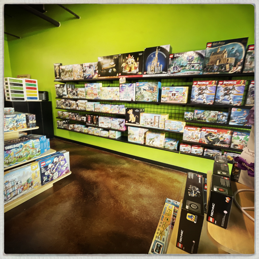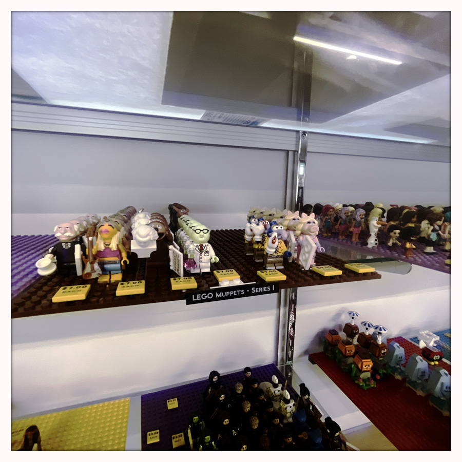 On s’arrête pour manger nos sandwichs préparés du matin frais. Et là, sur le parking, une magasin dédié aux Lego ! Le magasin est super. Des mini figurines partout, de quoi fabriquer n’importe quel personnage, des sets plus ou moins anciens, des supports pour exposer fièrement ses collec’