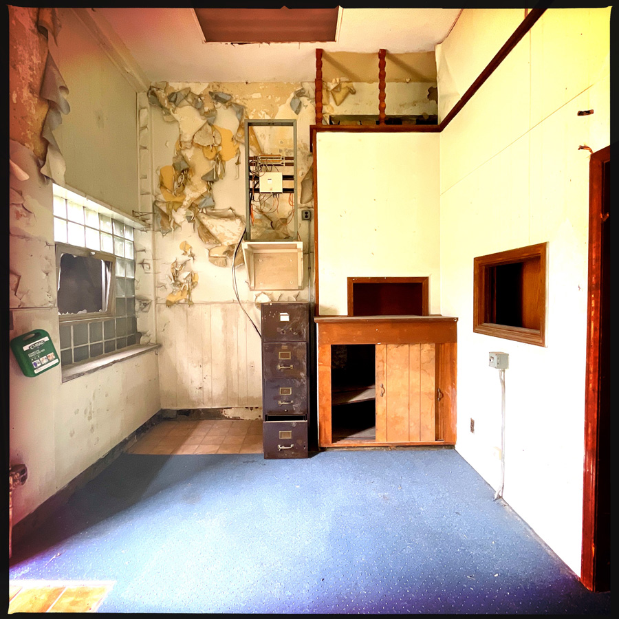 À un moment, je me suis dit que c’était étrange, cette absence de messages sur les murs, pas de graffitis, rien. Mais je viens de tomber sur un article qui précise qu’avant de rouvrir au public, ils ont tout nettoyé (c’est vraiment curieux parce que c’est globalement pourri, ils ont maintenu le délabrement, mais nettoyé les murs). C’est une ruine stabilisée.