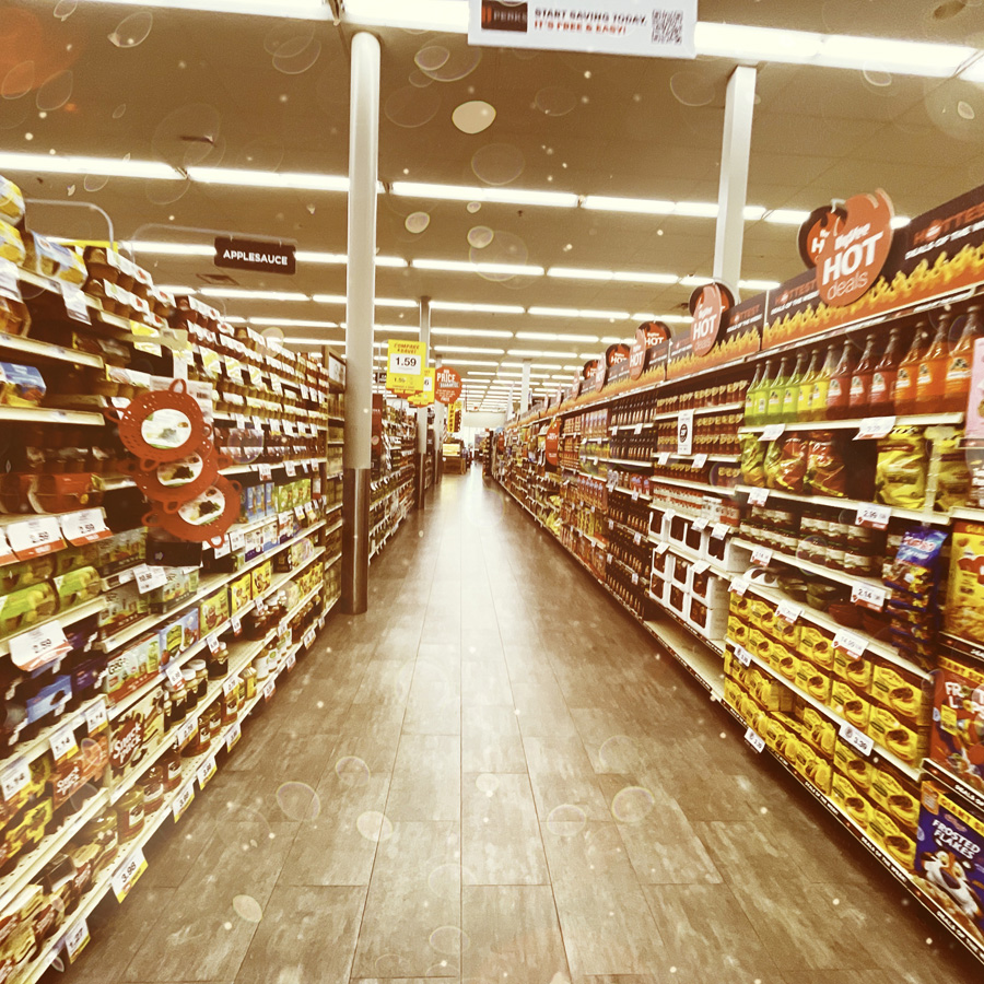 Tout est réjouissant. Il y a même une partie dédiée à l’alcool avec plein de tequila, plein de tout. On s’amuse bien. Nous aimons les supermarchés. Peut-être que si on se re-marie un jour, on se mariera dans un supermarché, et ça sera un faux Elvis qui fera la cérémonie dans une baignoire de tequila au gin.