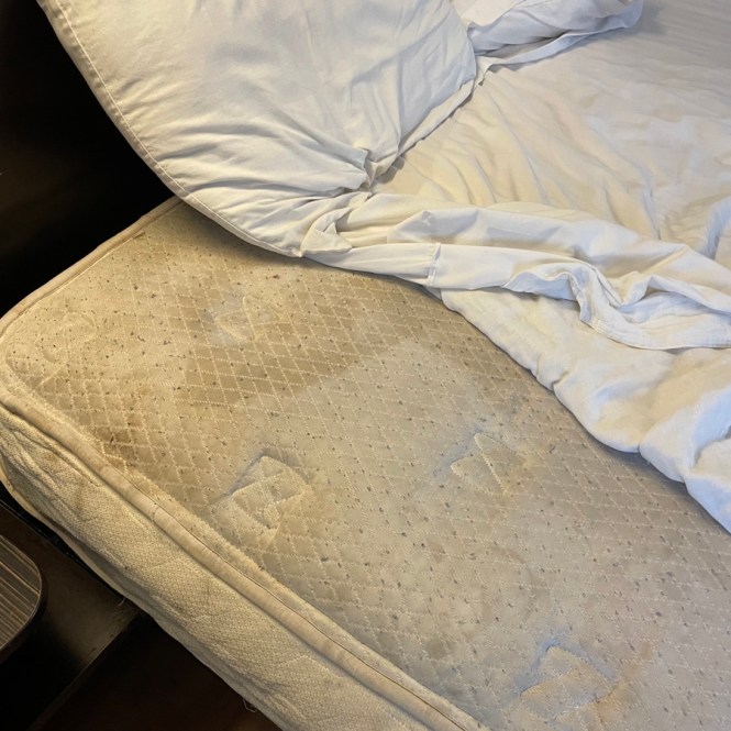 Mais commençons par le commencement. Cette chambre de motel, et je ne suis pas méga snob, mais quand même. Par exemple, dans nos deux glacières, y’avait des cafards, alors j’ai tout jeté. Dans la baignoire, y’a des tas de trucs un peu collés dans la bonde. Je déplie une serviette, elle est encore humide et pleine de taches. On ne sait ni ou s’assoir ni ou se mettre debout.