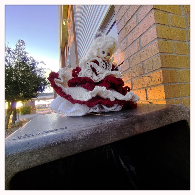 Je pense que nous n’évoquerons pas les draps dans lesquels nous avons dormi avec plein d’habits que j’hésite à brûler. On descend les valises, et sur la poubelle, une poupée qui fait peur abandonnée. Si mes connaissances en films d’horreur sont exactes, une nuit de plus, et on terminait eviscérés dans la piscine abandonnée la nuit d’après. À la place, on s’en va après avoir appelé mon neveu qui a deux ans aujourd’hui. HIIII !