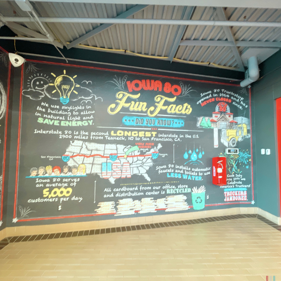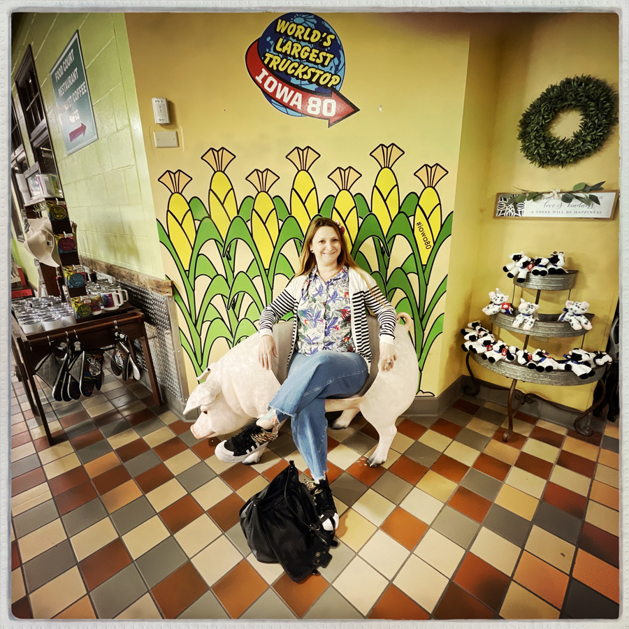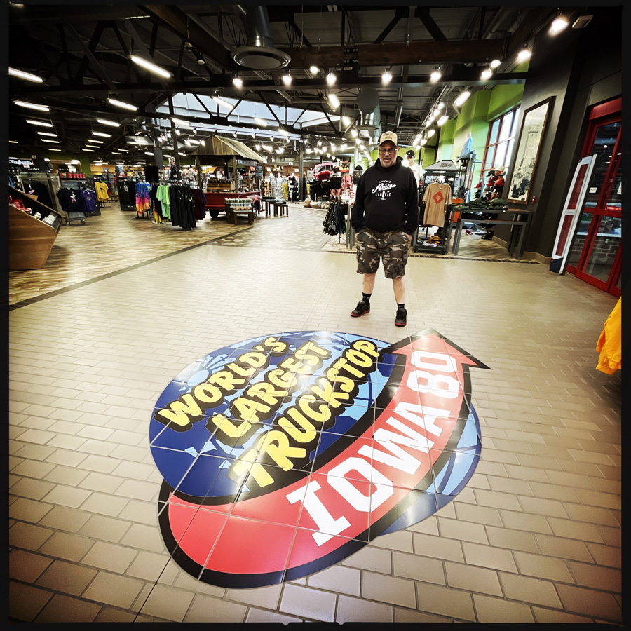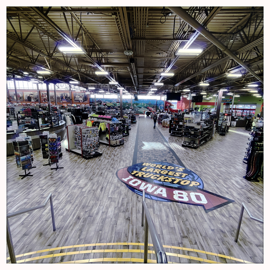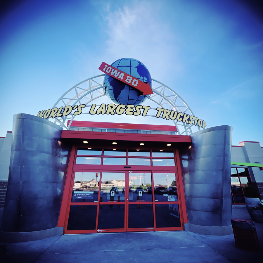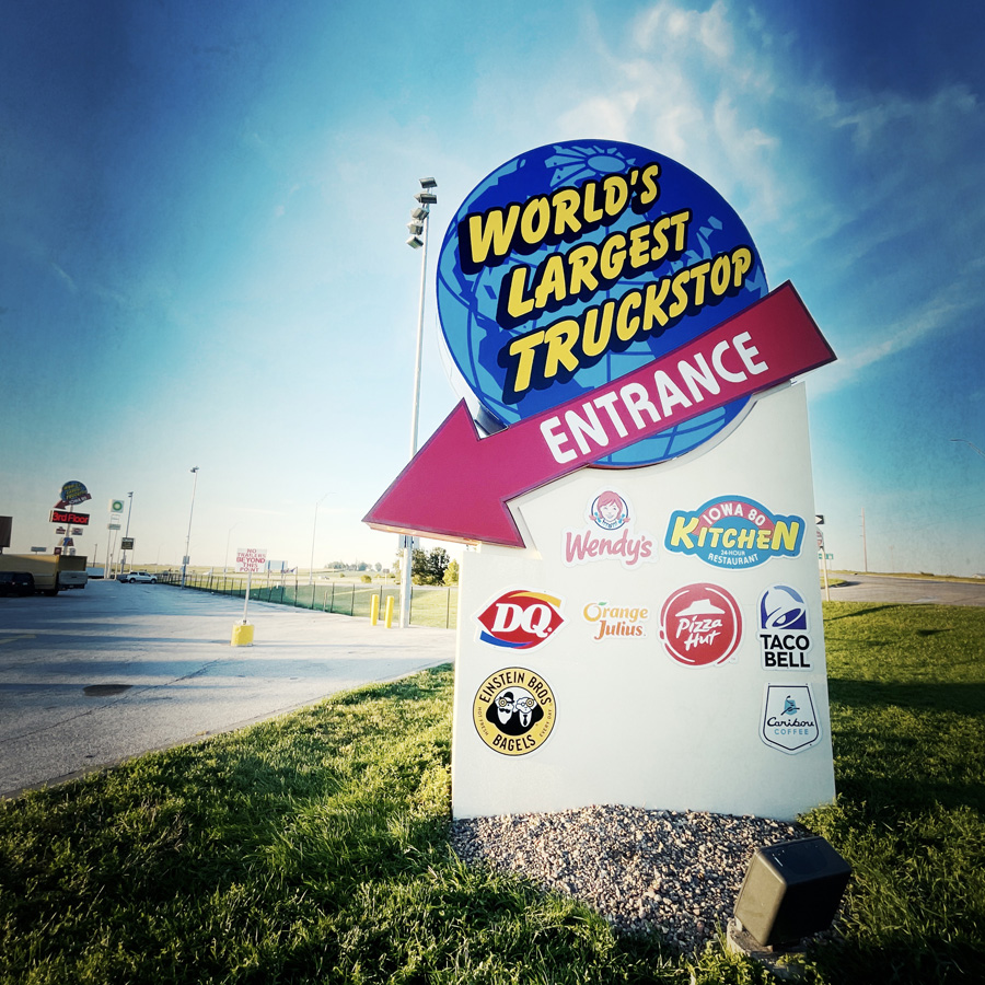 À la sortie du réjouissant Davenport, il y a, attention mesdames et messieurs LE PLUS GRAND TRUCK STOP DU MONDE ! J’aime vraiment bien ce pays et ces excès de langage. La bière la plus froide, la poêle à frire la plus grande, l’ex-président le plus con.