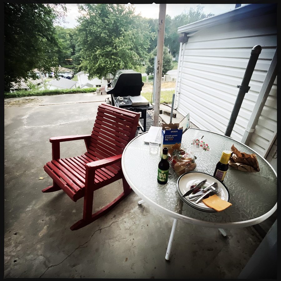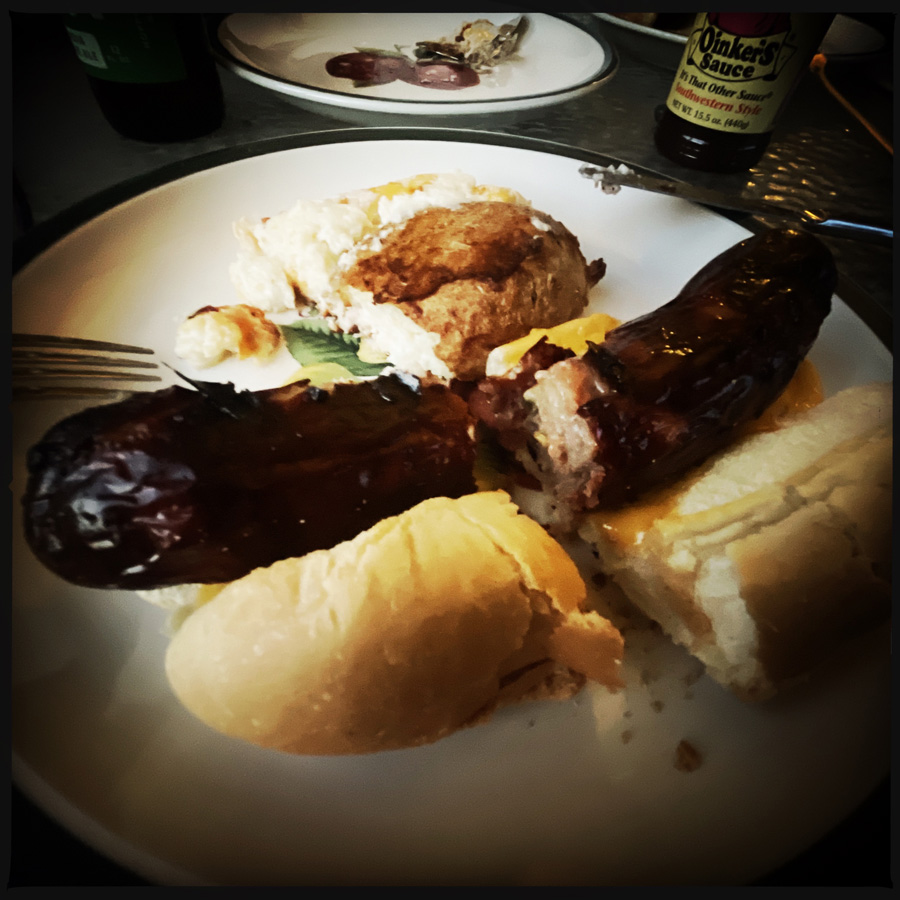 On rentre, on s’installe, on boit l’apéro en mangeant des Triscuits (c’est genre des chips, mais très très très bon). On mange, j’en veux à Manu d’avoir pris des saucisses au Jalapeno parce que ça pique.