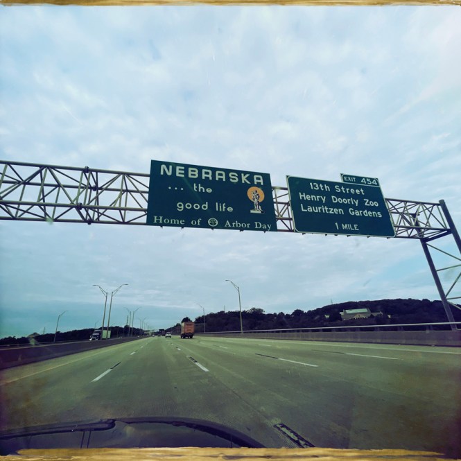 Ensuite c’est la route, rien de foufou. Pas de stop rigolo à faire, et le paysage est un peu sans intérêt. Sauf si vous aimez les champs de maïs. Alors là, c’est l’apothéose orgasmique de l’épi.