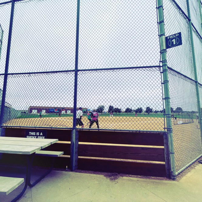 Avant d’arriver au musée, genre 500m, Manu voit un terrain de softball public, où y’a des tas de games en cours. Alors on y va. On regarde deux parties. De fait, ça va plus vite qu’en pro.