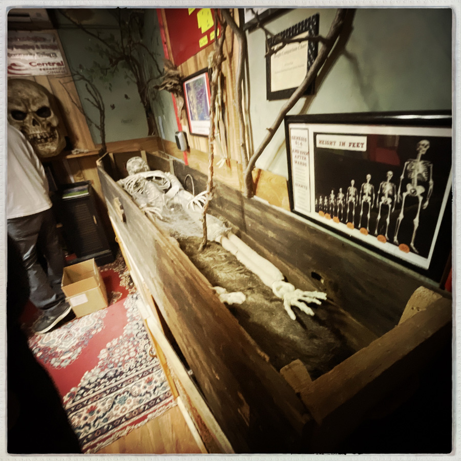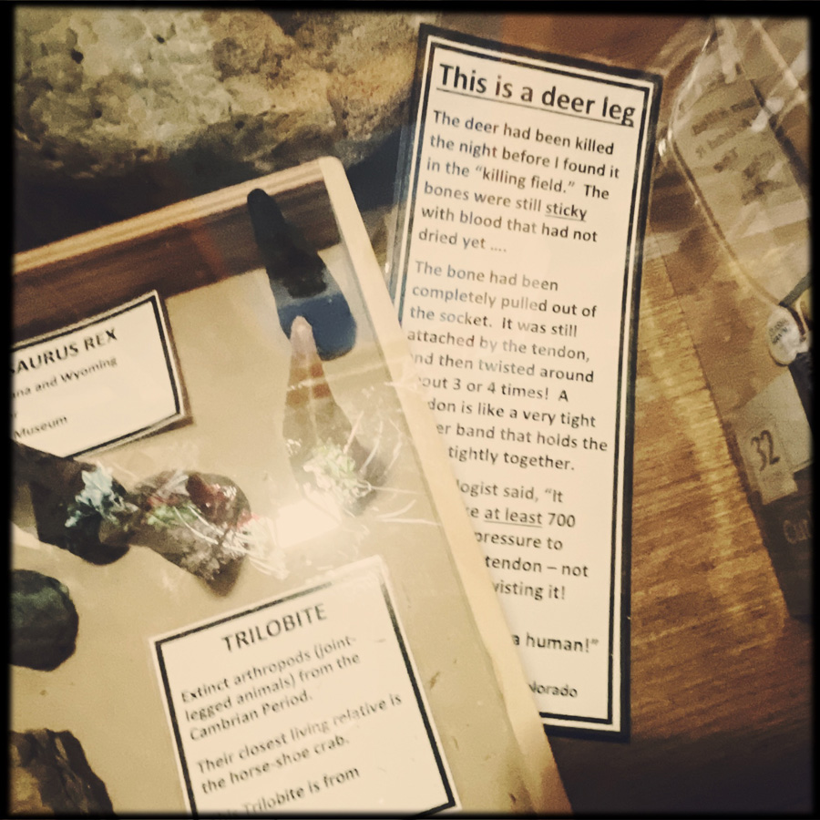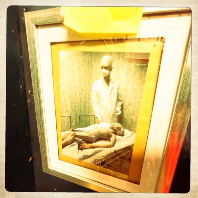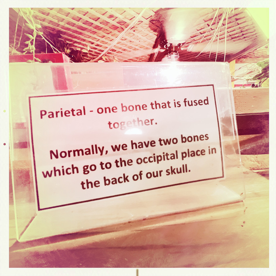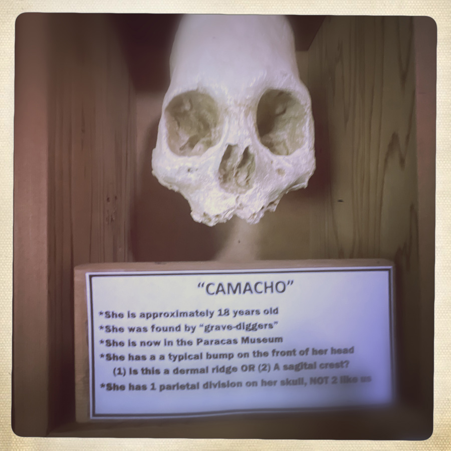 Elle nous libère, on démarre la visite du musée (40 minutes plus tard). Trois quatre pièces. Des crânes (des répliques plastiques), et des petites explications pas piquées de hannetons.