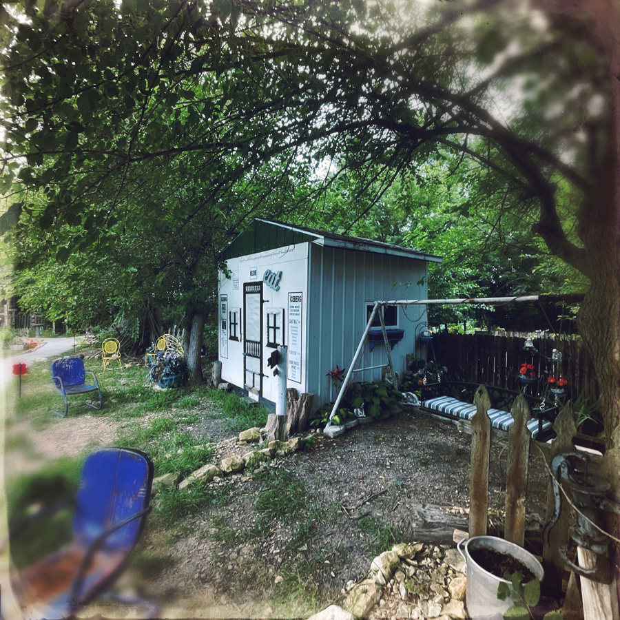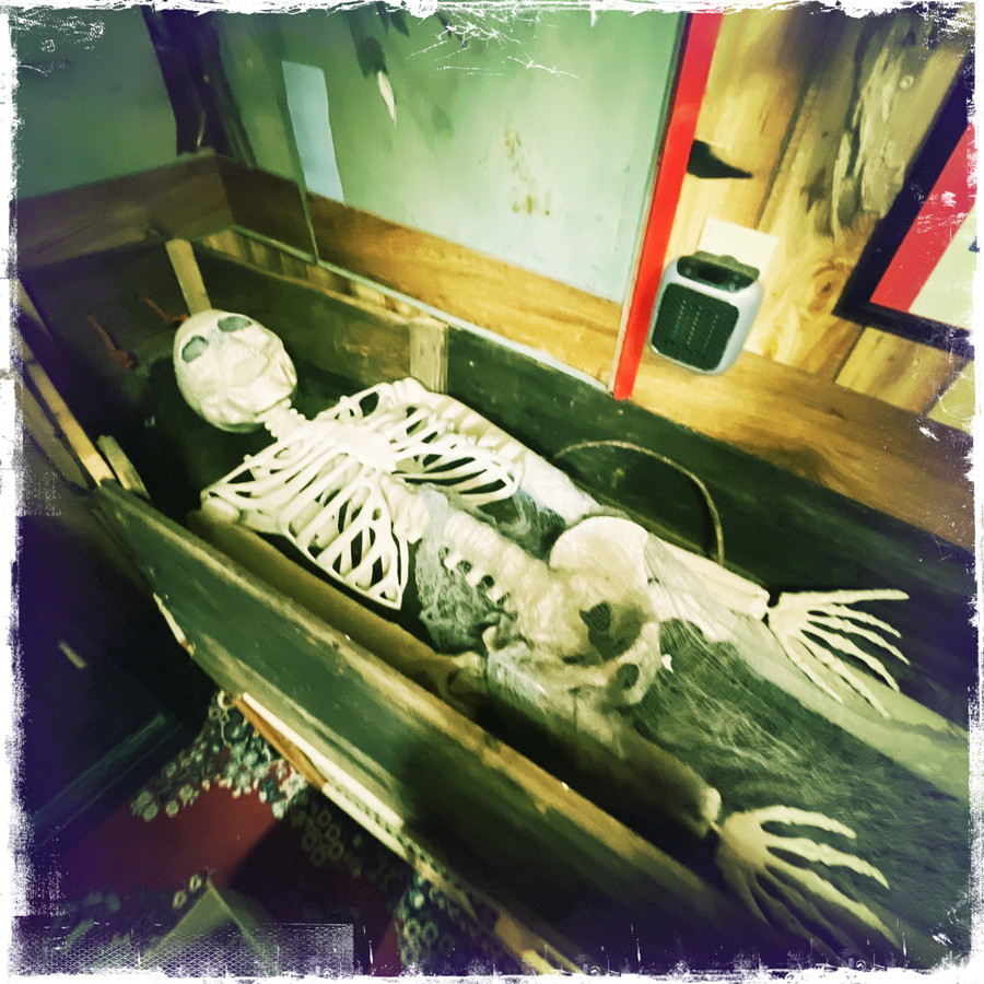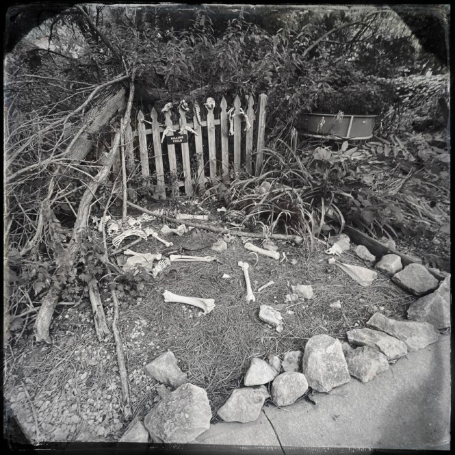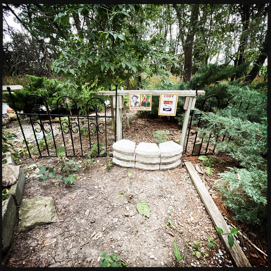 On enchaine avec le jardin qui mène à une autre cabane. Scott (le monsieur du début) nous récupère. Il travaille là (gratuit) et nous montre tous ses travaux. Une fontaine, une autre fontaine, la réplique de le tombe de Buffalo Bill (alors oui, on a posé la question : c’est parce que Harriet serait un genre de cousine), un gazebo pour célébrer les mariages. Scott nous montre aussi une réplique du « killing field », un genre de parterre de terre avec des os en plastique jeté dessus.