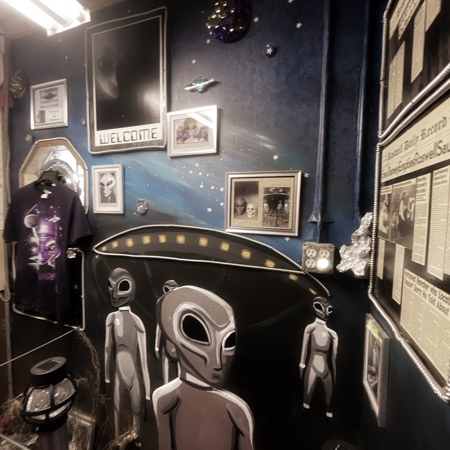 Et d’un coup, après un mur de tresse de chevaux mystère, ça commence à partir en couille : y’a aussi un mur dédié aux aliens. (je vous invite vraiment à regarder de près les photos à la fin de cette histoire, car bon sang de bois, c’est foufou).