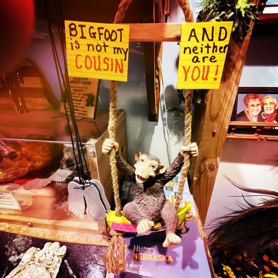 Il y aussi un petit singe sur une balançoire avec deux post-it « BIGFOOT IS NOT MY COUSIN » « AND NEITHER ARE YOU ».