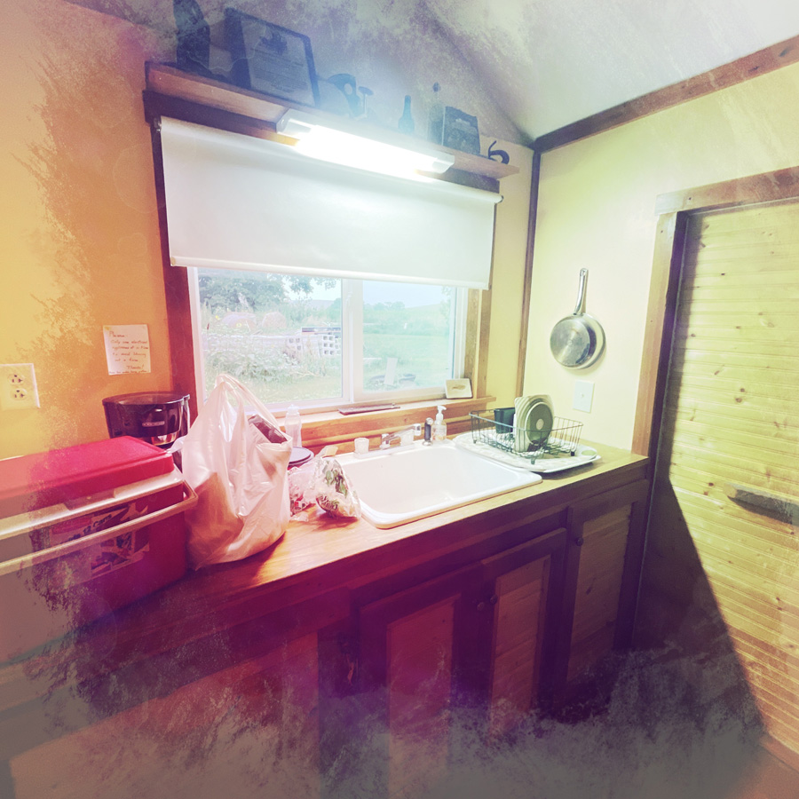 Un monsieur en salopette de travail nous accueille dehors avec beaucoup d’enthousiasme. Il lui manque des dents, son accent est très fort. Il est tout abimé par des tas de truc, mais il est content de nous accueillir. C’est Scott, il nous pose des questions « D’où on vient, où qu’on va », etc.