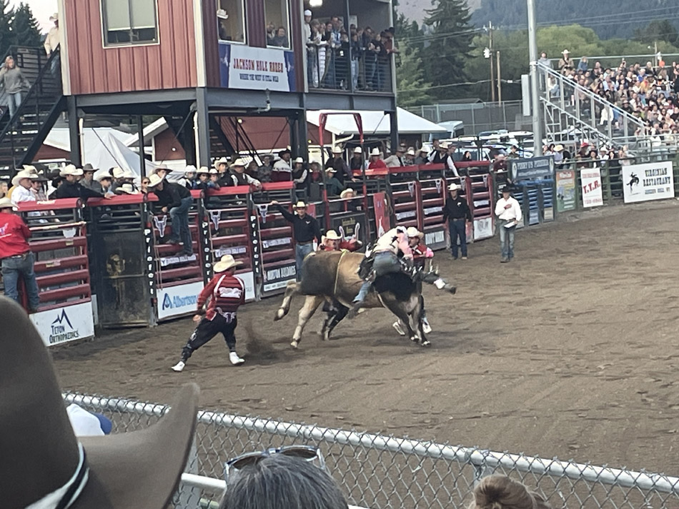 Et on arrive à Jackson Hole, c’est là qu’on dort. On dort là parce qu’on va voir un rodéo, c’était mon cadeau d’anniversaire pour Manu qui depuis plein d’années me dit d’un air enjoué « Oh, j’irais bien voir un rodéo ! ». Aller à Jackson, c’est même un détour sur notre parcours.