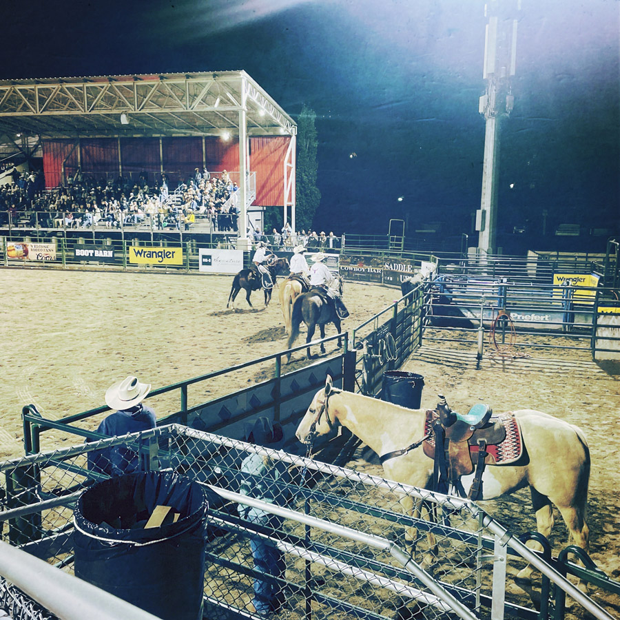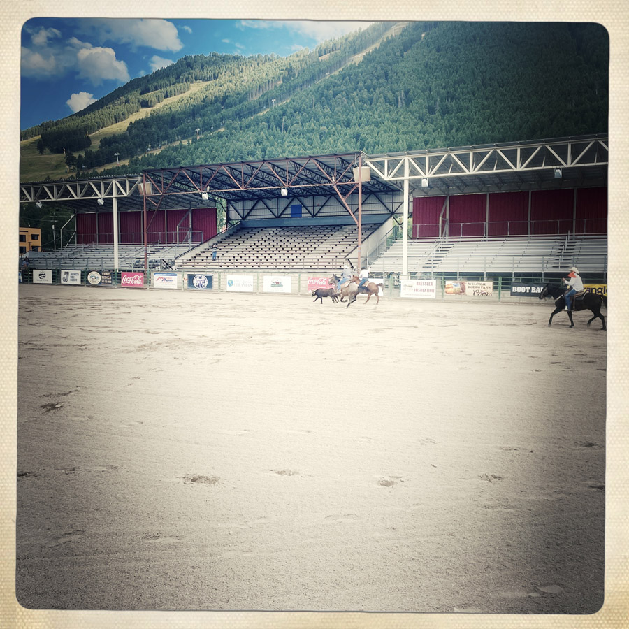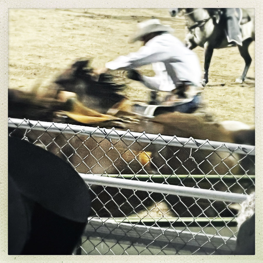 Le rythme est bien géré, on passe du rodéo sur taureau, au bare back (sur des cheveux sans selle), à l’attrapage de veau à deux et au lasso (les cornes et une pattes). Très vite le lasso se détend et le veau repart direct vers la sortie genre ça suffit vos conneries.