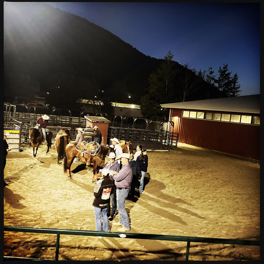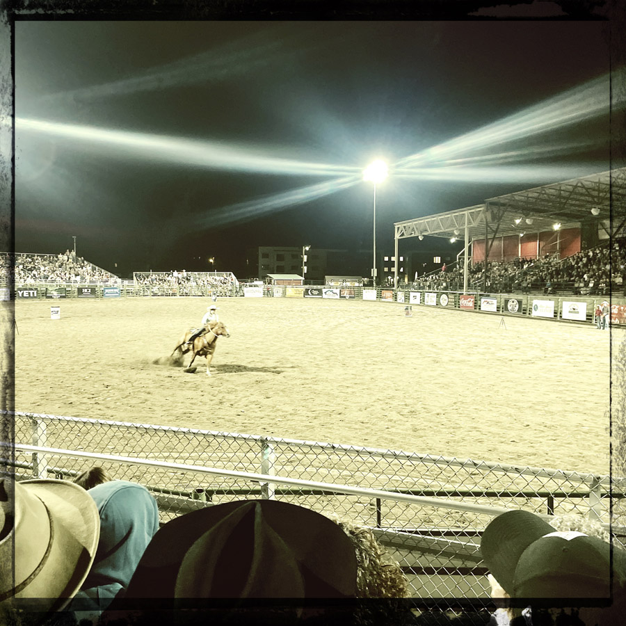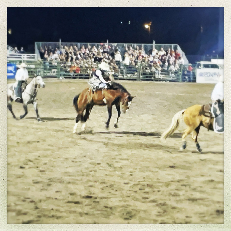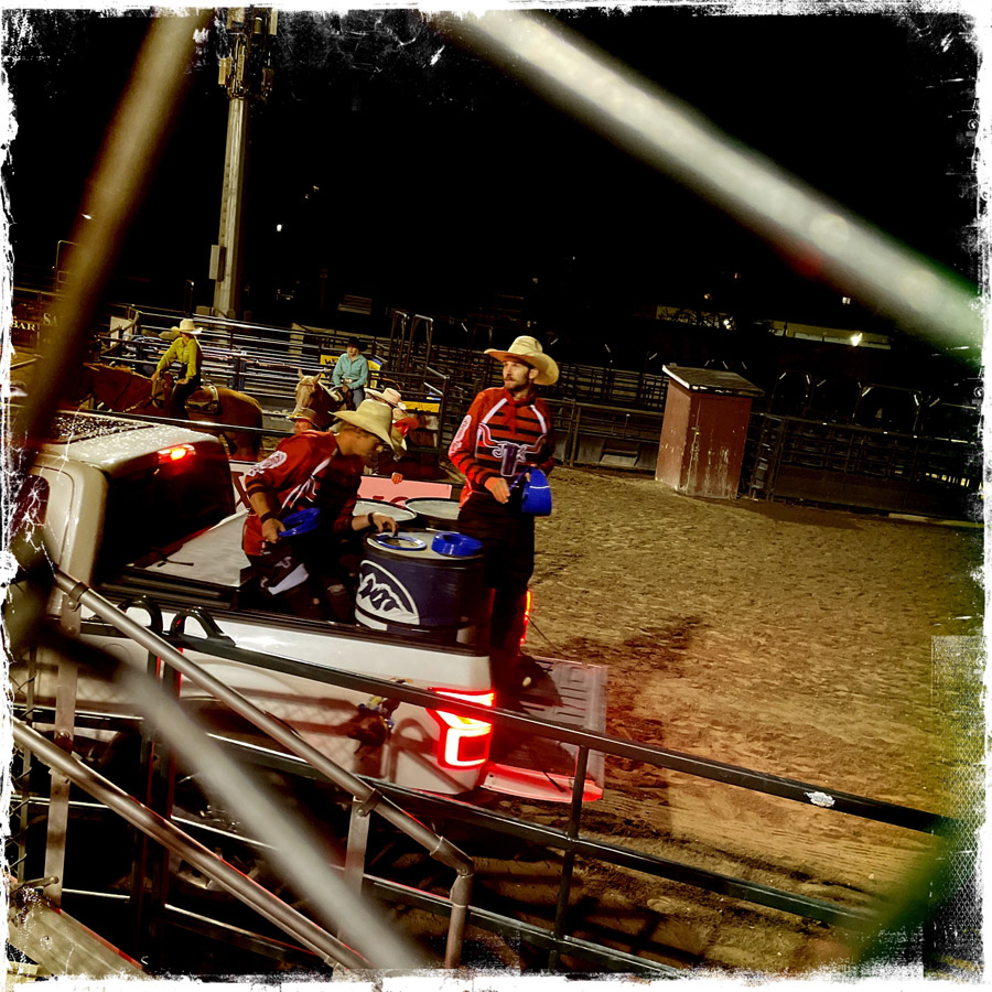 Et puis c’est de nouveau, comme avant le début du show, au tour de la course autour des barils. Et je ne sais pas, j’invente peut-être, mais je les vois se préparer avec leur cheval avant, elles sont ont entre 13 et 17 ans, et elle parle à leur cheval, y’a jamais un geste agacé, et elles courent. C’est 13 secondes de course intense, mais ce n’est pas la même dynamique virile que de prouver au monde qu’on peut tenir 8 secondes sur un cheval en colère. Et ça, j’aime vraiment bien.