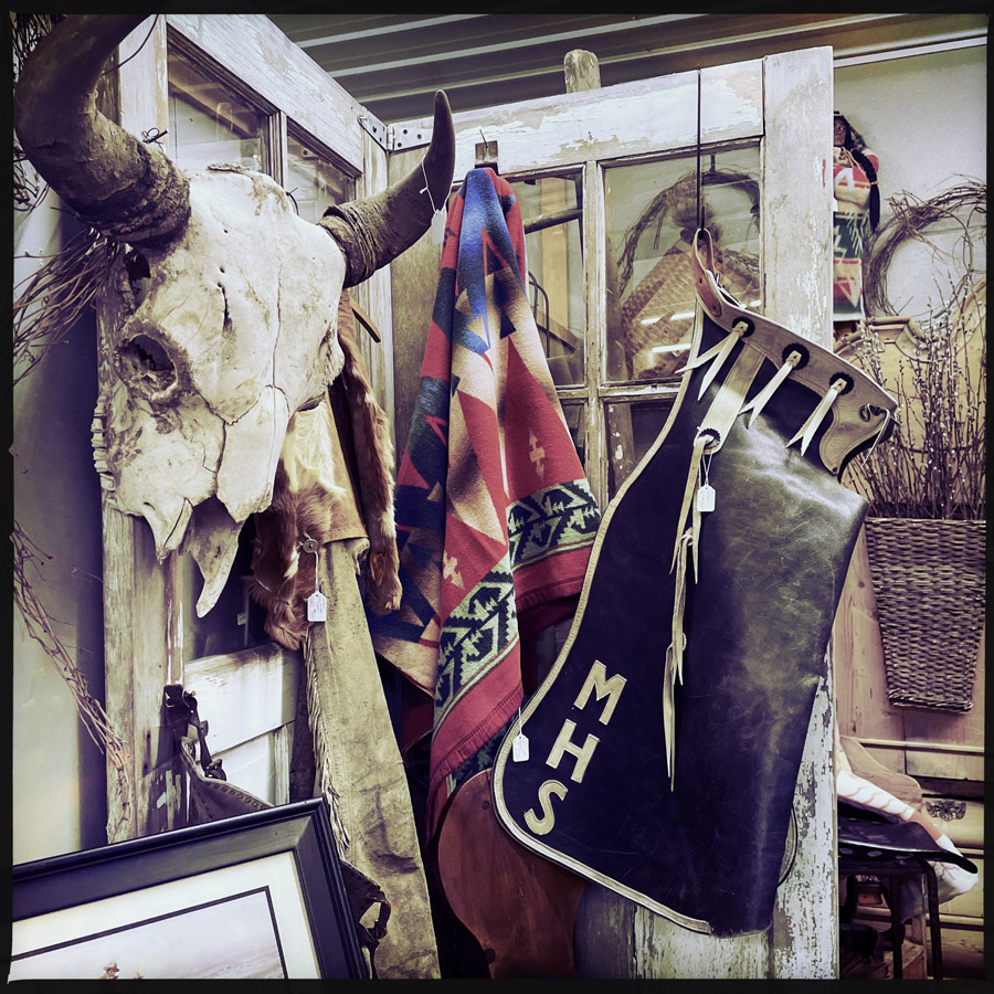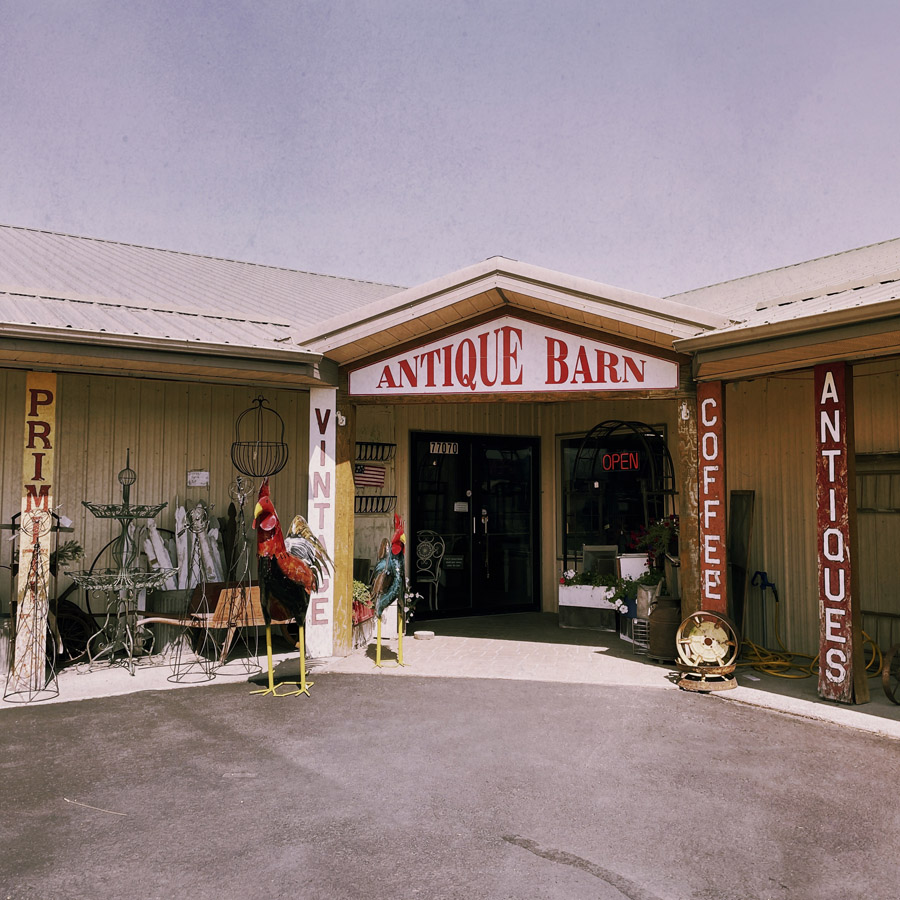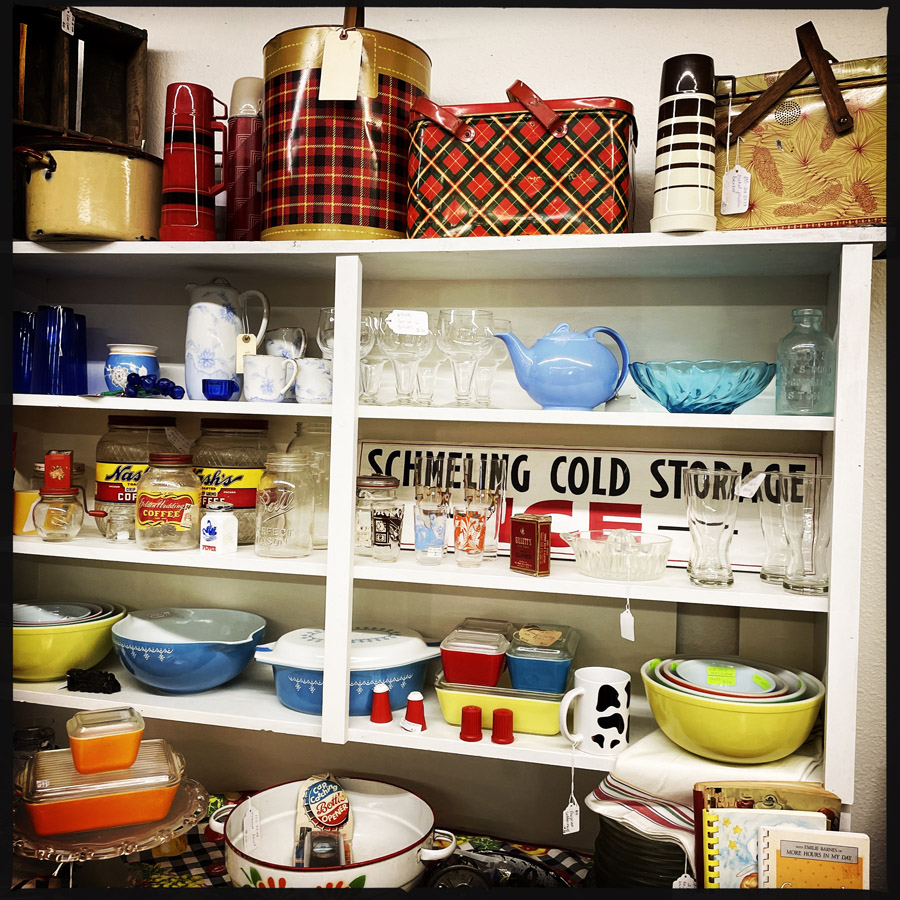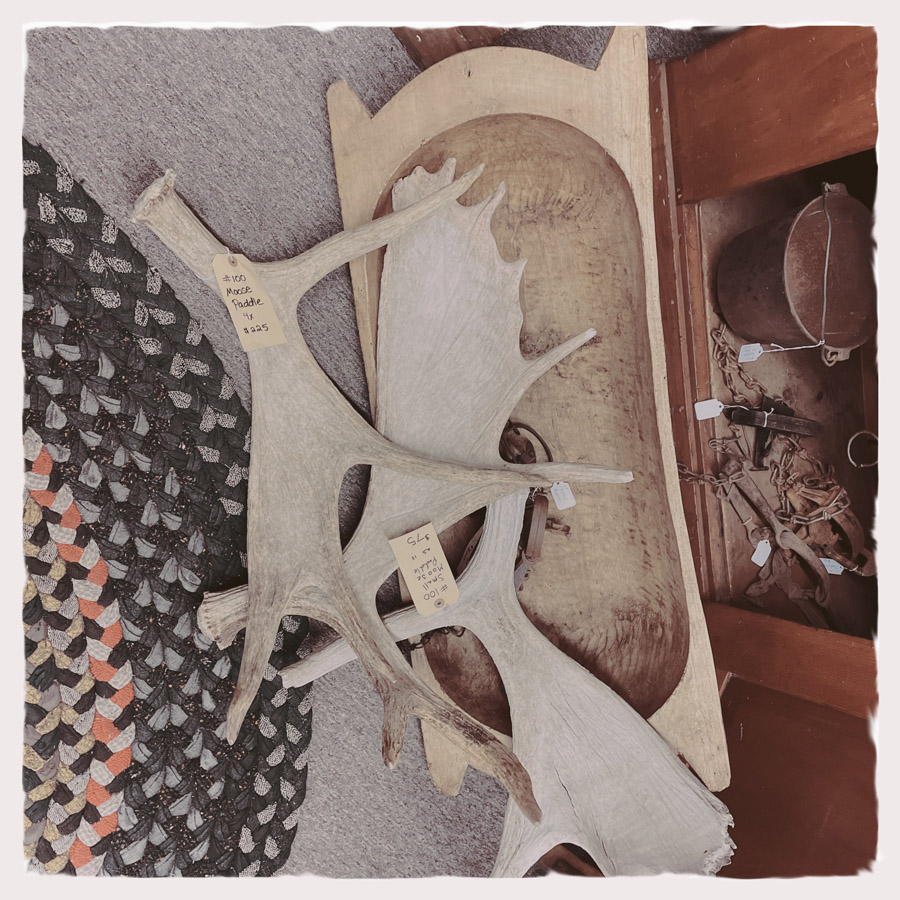 On s’arrête dans un magasin d’Antiques. Y’a plein de trucs qui me font envie, mais tout est bien trop cher. Y’a même pas de big iron skillet. 😦
