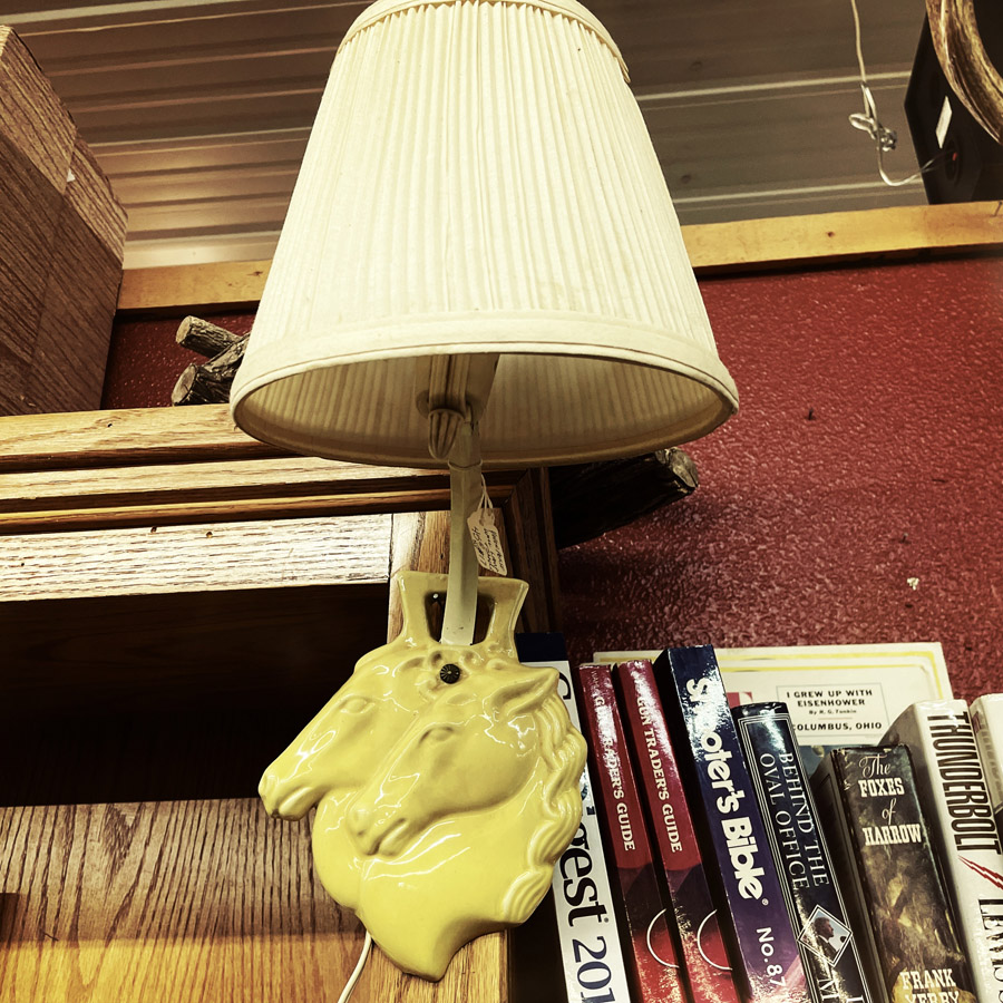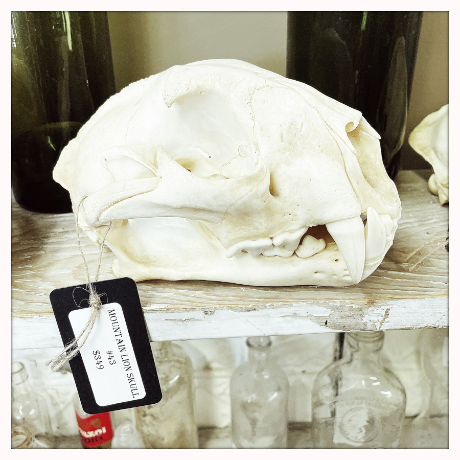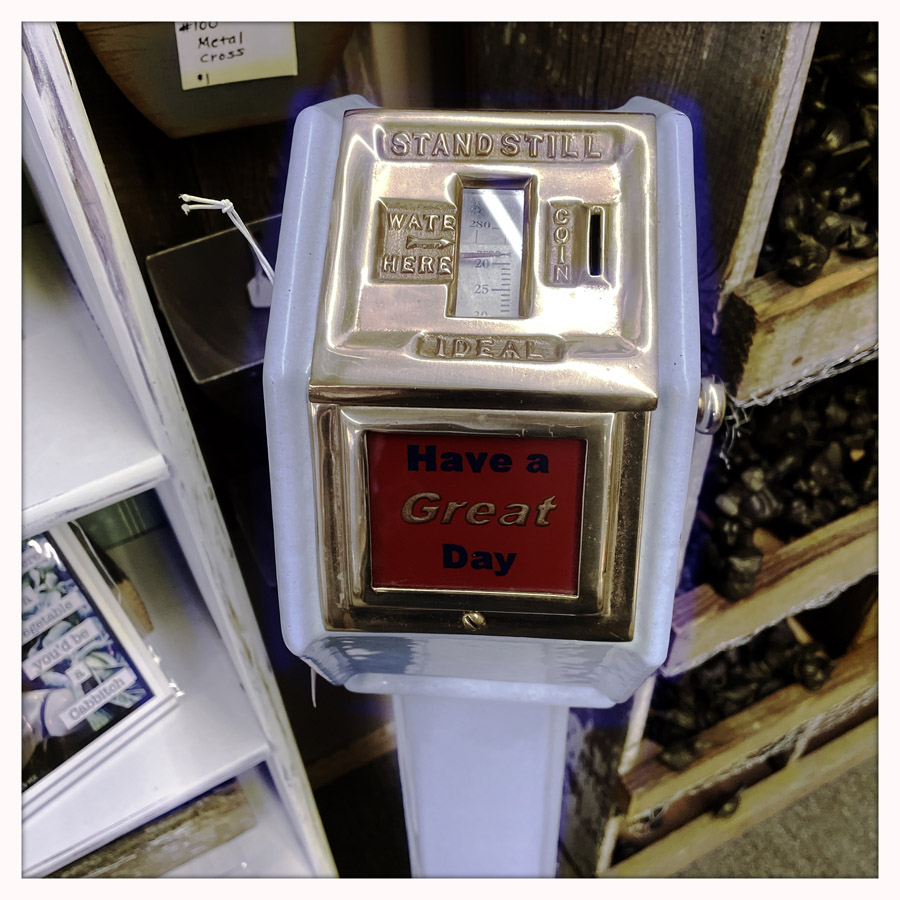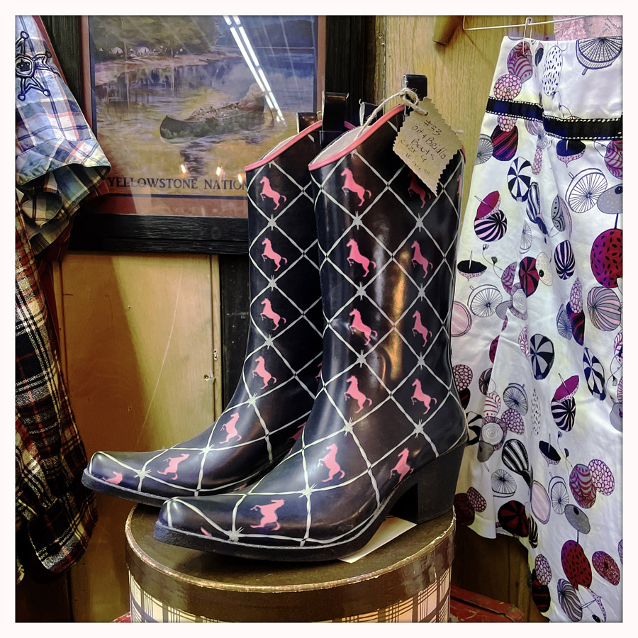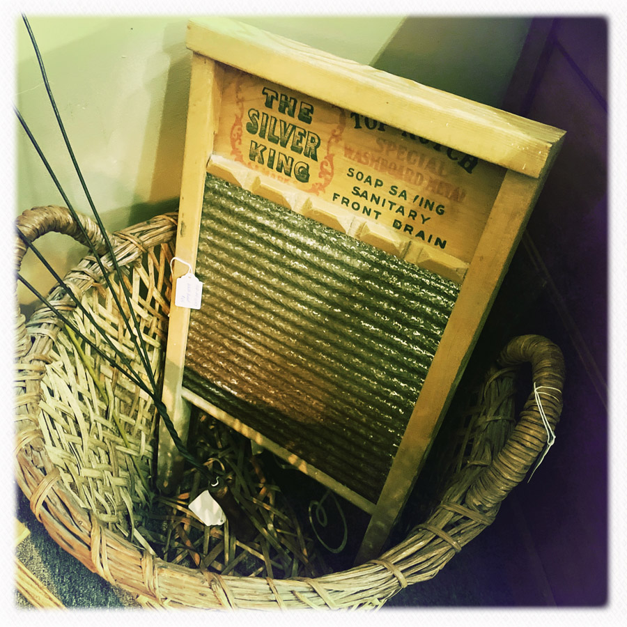 On s’arrête dans un magasin d’Antiques. Y’a plein de trucs qui me font envie, mais tout est bien trop cher. Y’a même pas de big iron skillet. 😦