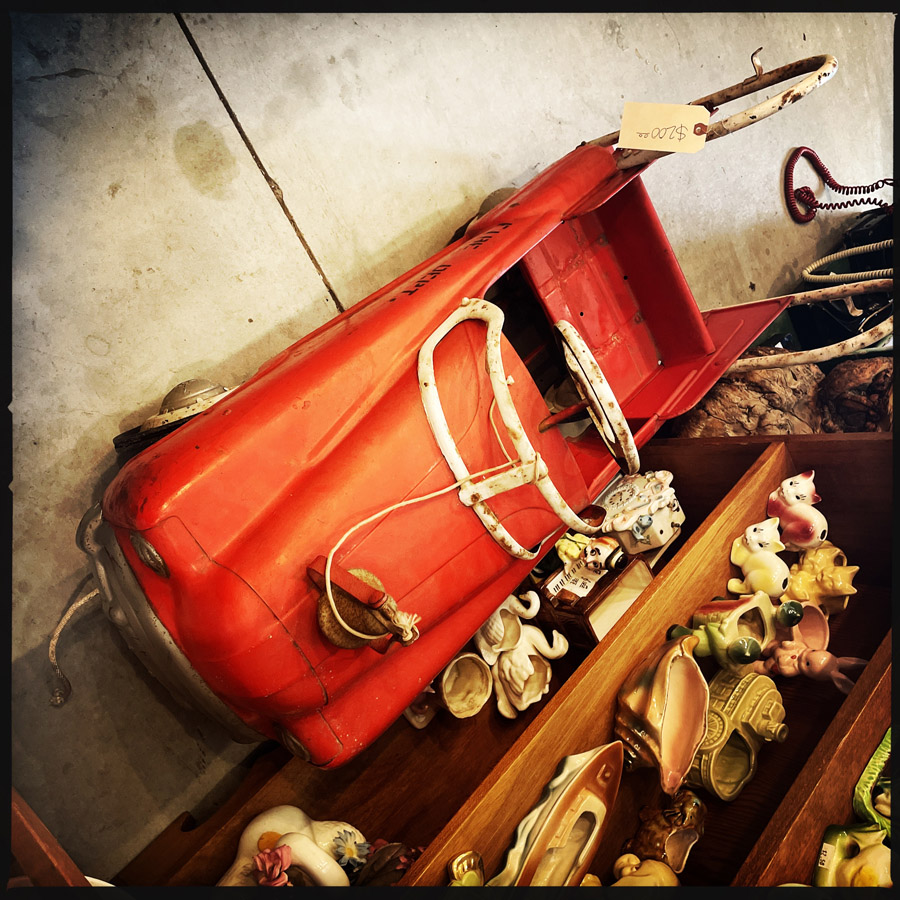 Au passage, on s’arrête dans un magasin d’Antiques (brocantes de bord de route), c’est toujours un poil trop cher pour craquer, et on manque de place de valise. Mais je pourrais en remplir des brouettes.