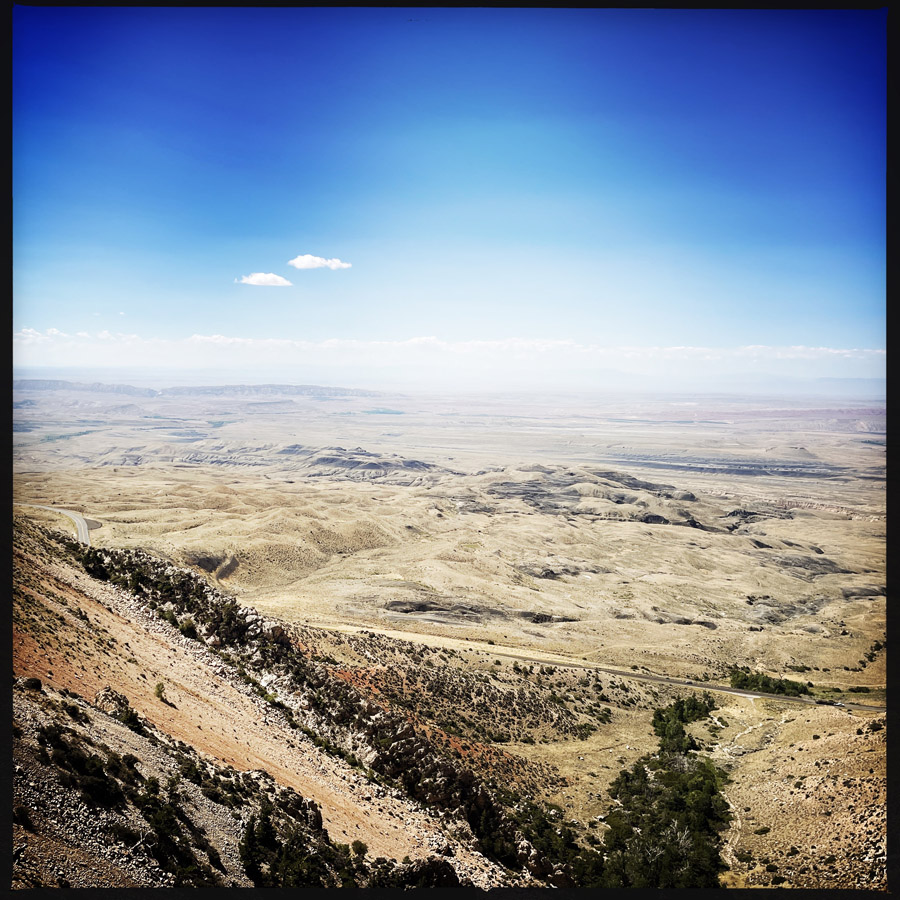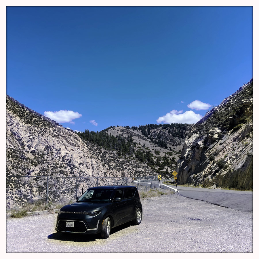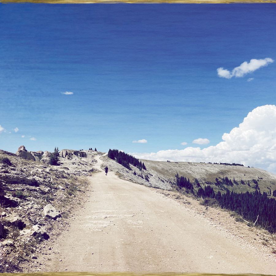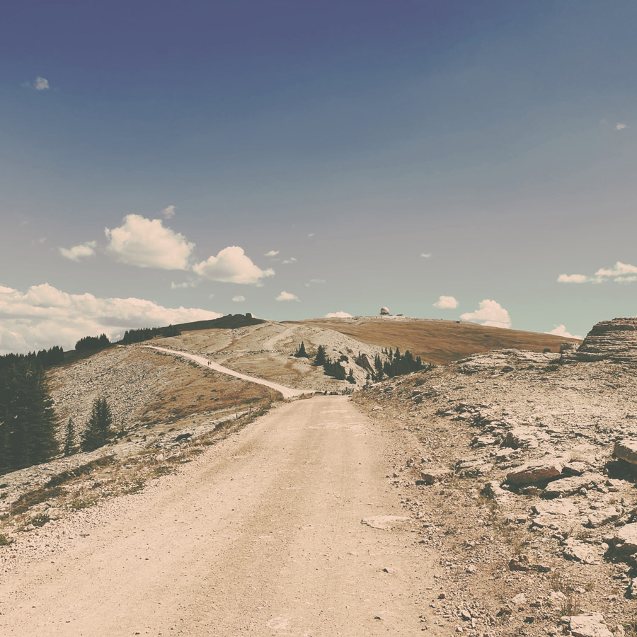 Pour aller à la Medicine Wheel, on grimpe dans la montagne en voiture, et on est encore sidéré par l’immensité et la beauté de ce pays. La découpe des montagnes, les couleurs, les centaines de kilomètres de nature inhabitée qui nous entoure. On ne pourra jamais se lasser de ça. Je voudrais avoir des petits tiroirs de cerveaux, pour ranger chacun de ses endroits et pouvoir les consulter quand je suis en manque d’évasion.