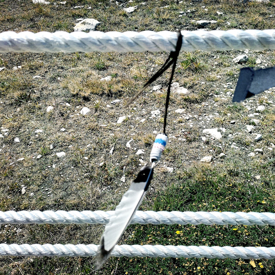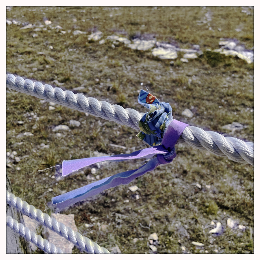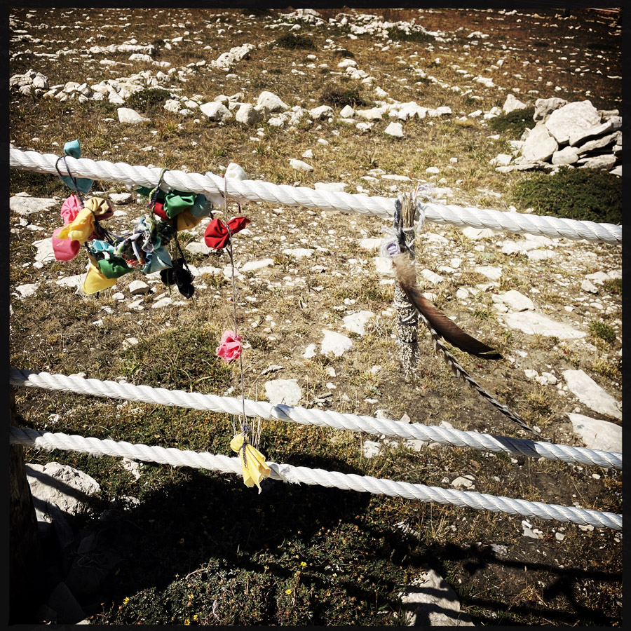 C’est un grand cercle, entouré de cordes, avec des dessins fait de cailloux empilés. Sur les cordes, dans les cailloux, sont attachés des petits bouts de tissus, des plumes, des bracelets. Ce sont des offrandes faites par ceux qui suivi le rituel. On fait le tour, c’est assez émouvant. C’est un lieu très ancien, préservé.
